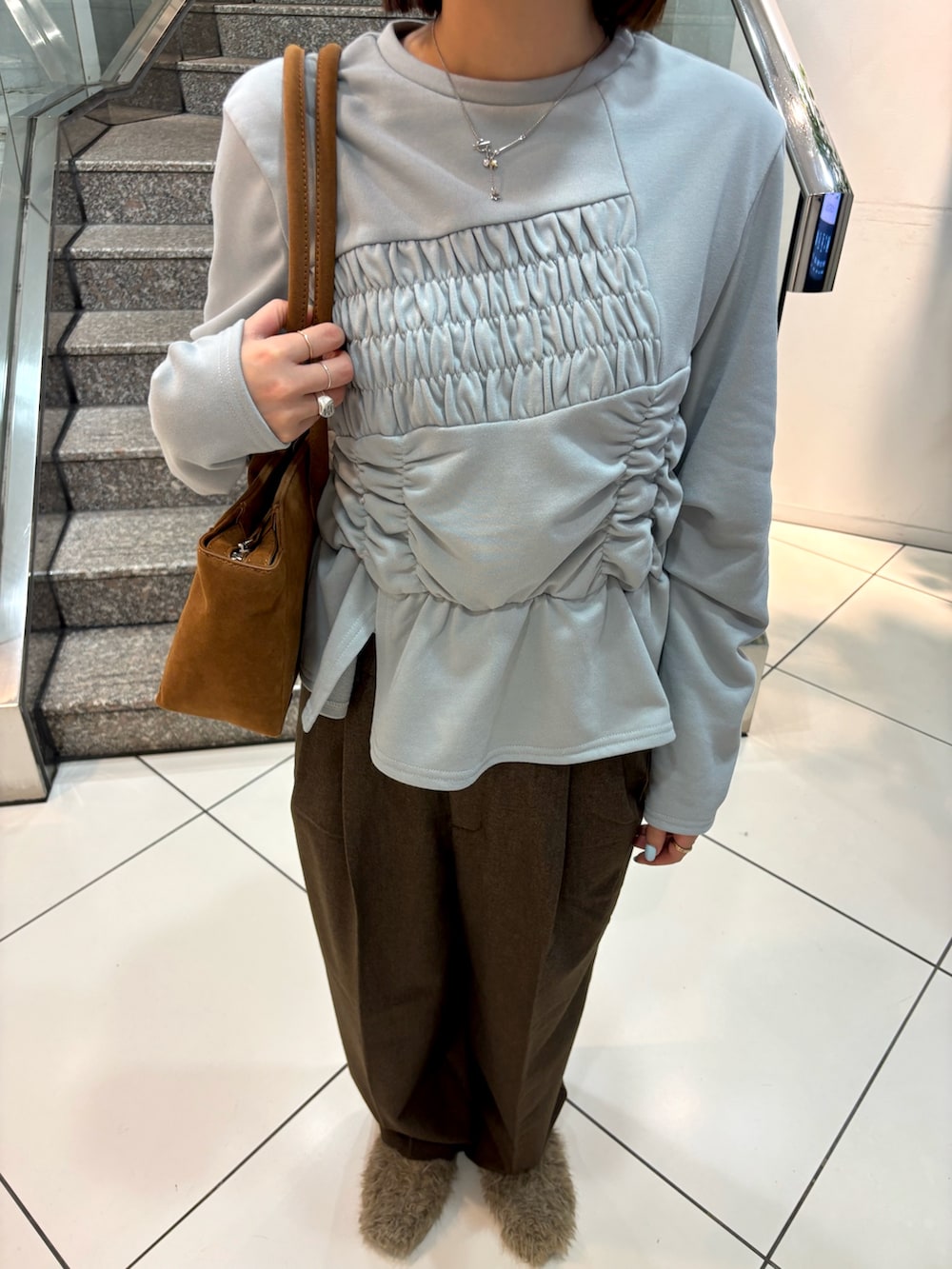 流行りのブルーとブラウンで淡色コーデを組みました🪺