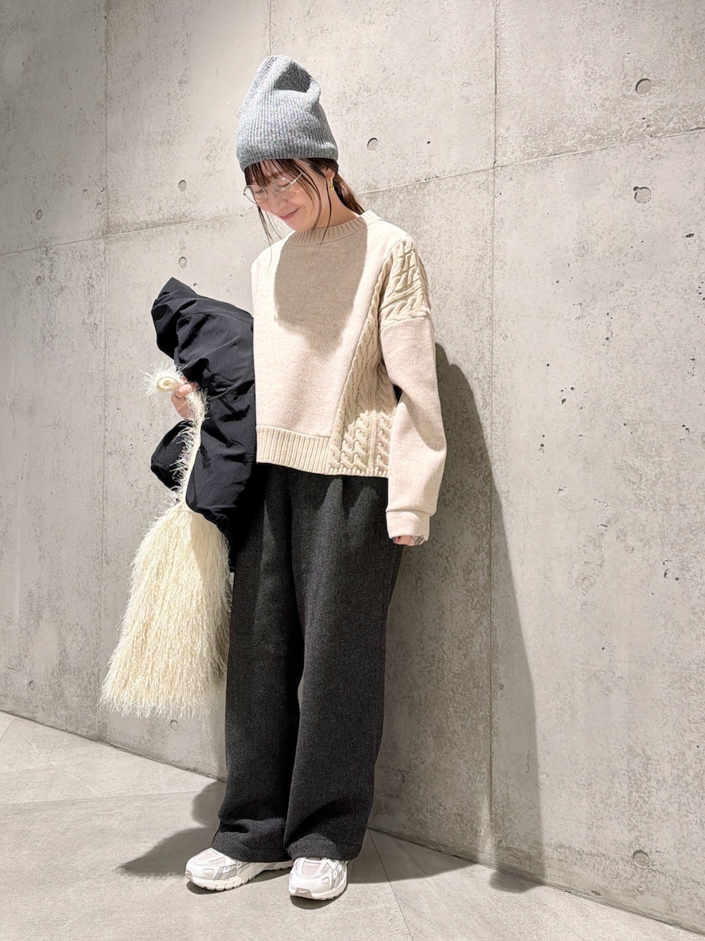 今回は、温かみのあるツイードパンツを合わせた、大人カジュアルコーディネートです。