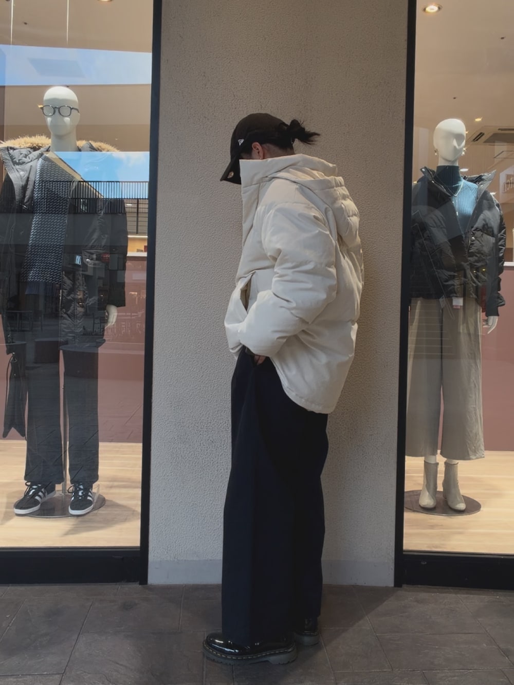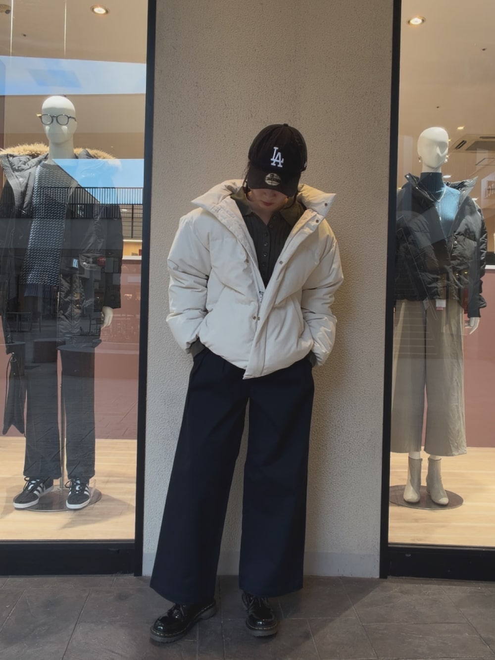 ボリューミーなダウンと暑さを調節出来るように中は薄めのトップスを合わせています。