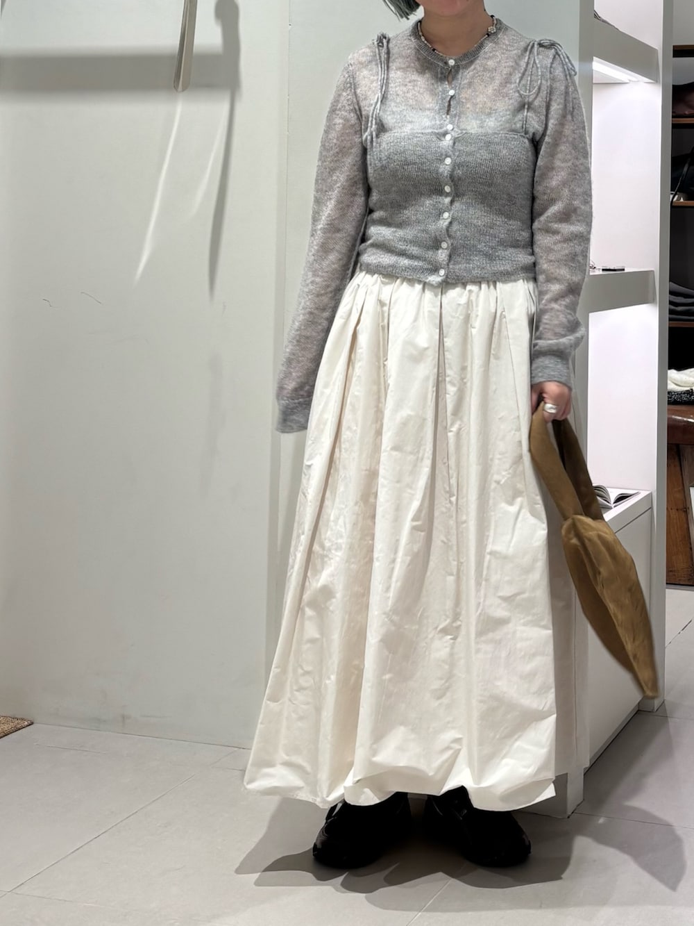 シアー感の強いモヘヤ混のニットはレイヤードも楽しめます🎶キャミと合わせるのがおすすめです。