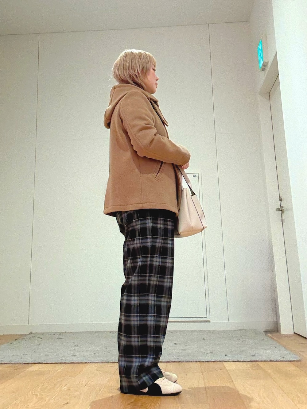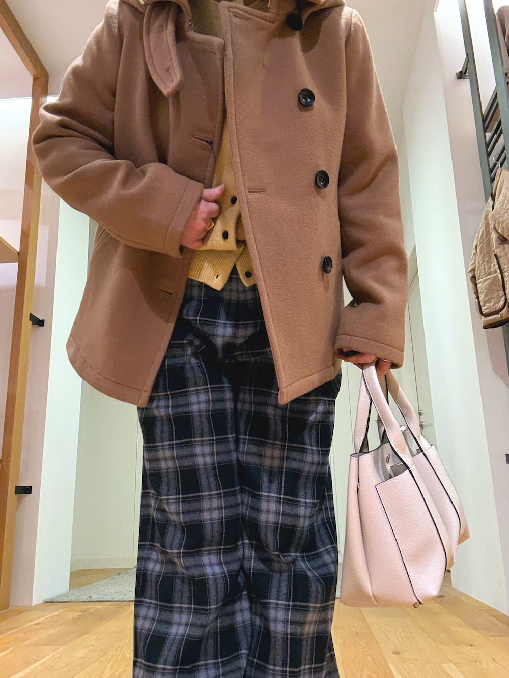 ショート丈のピーコートを羽織ることで、バランス良くすっきりとしたシルエットに仕上がります。