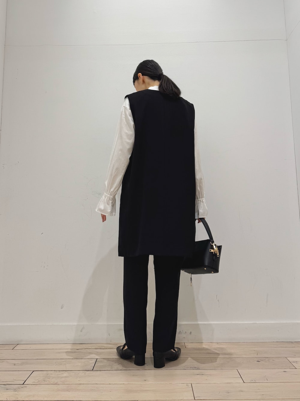 ロングジレなので腰回りまでカバーしてくれつつ、おしゃれ見えします◎