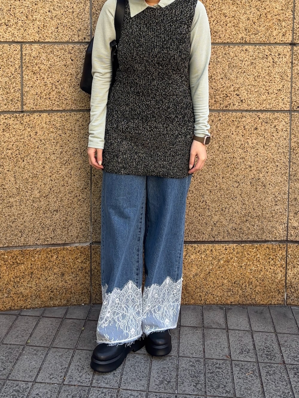 SENSE OF PLACEレースドッキングデニムパンツ- 着用カラー: