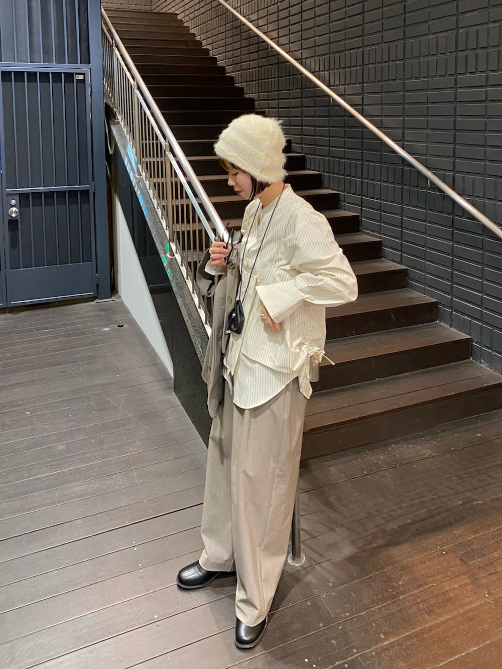 KBFラインデザインシャギーニットビーニー- 着用カラー: