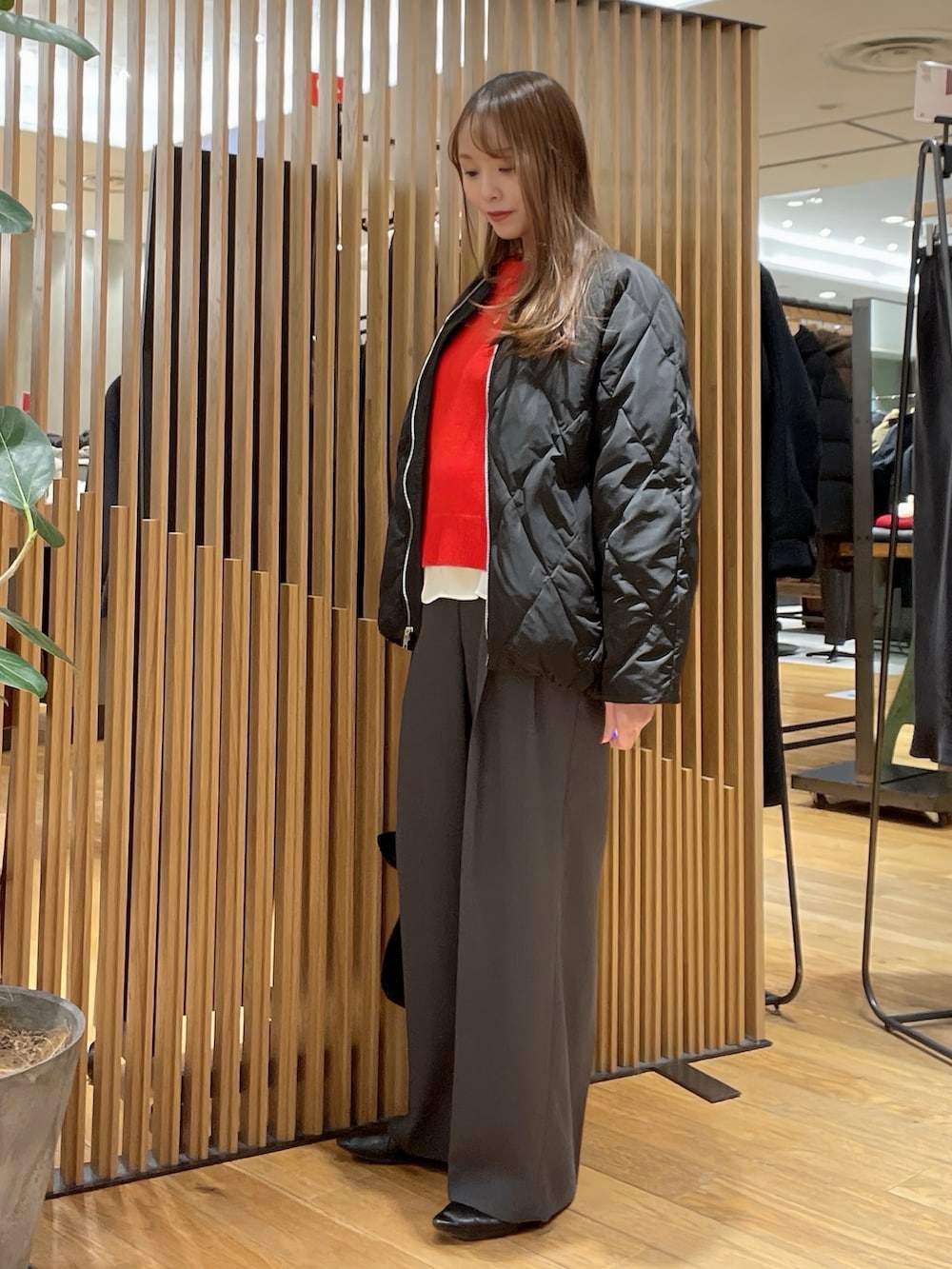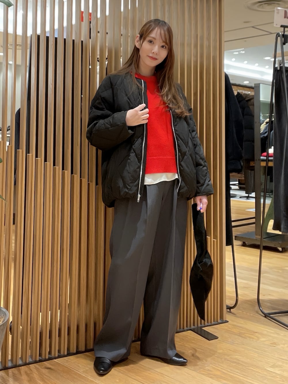 ☝️カラーニットの日は、他をベーシックカラーで揃えるとバランスが整います◎