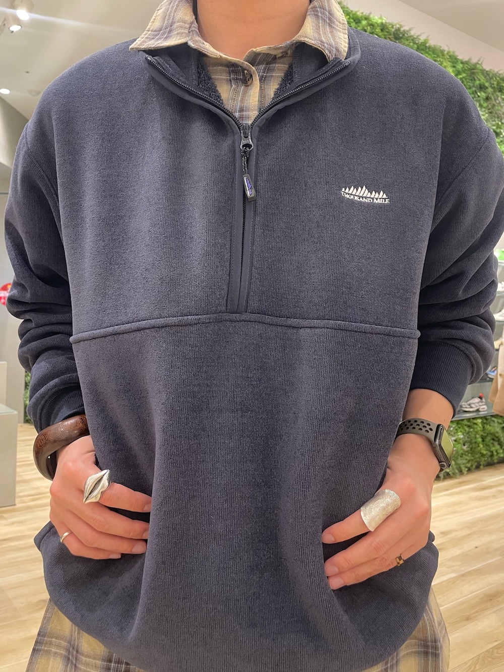 THOUSAND MILEのニットフリースハーフジッププルオーバーは裏地がフリース素材なので暖かく抗菌防臭や静電防止機能も備えているのでオススメです︎︎👍🏻︎︎