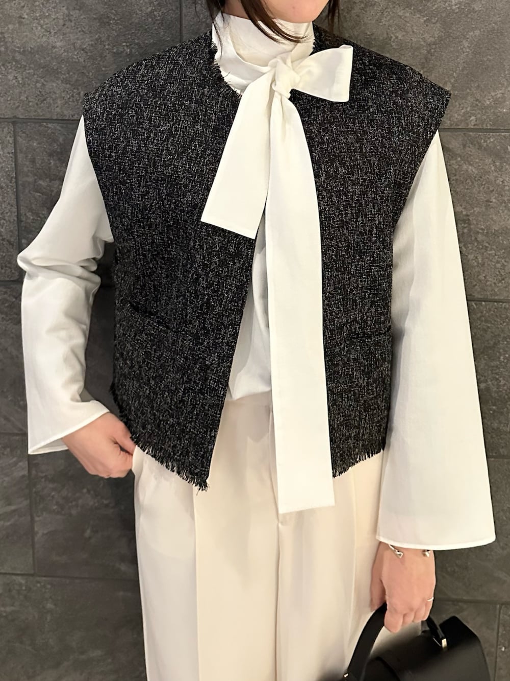 別注ツイードショートベストはセレモニーにはもちろん、カジュアルに普段使いまで着回し力◎◎