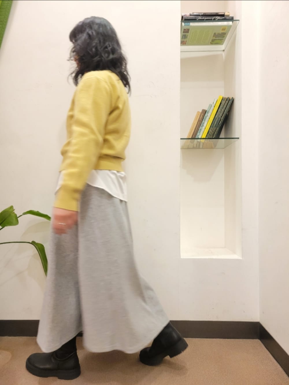 シャツはゆったりで着丈長めで