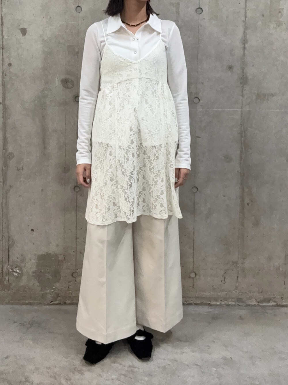 スタッフ人気の高い襟付きカットソーに、春らしいレースワンピ合わせで。