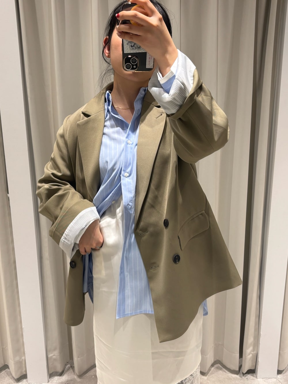 ワイドでサラッと羽織れるジャケットは、オーバーなシルエットでシワにもなりにくくてオススメです◎