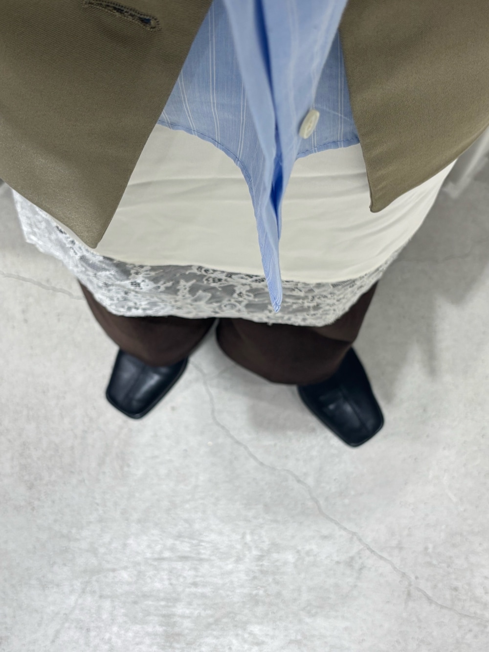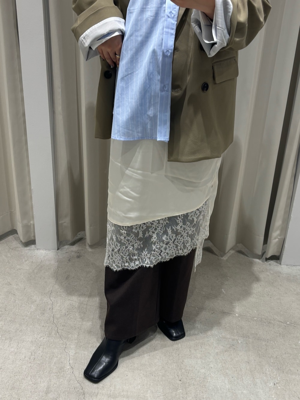 アシメスカートも単体でも着用できますが、パンツとの重ね着でよりオシャレ度が増します👍🏻
