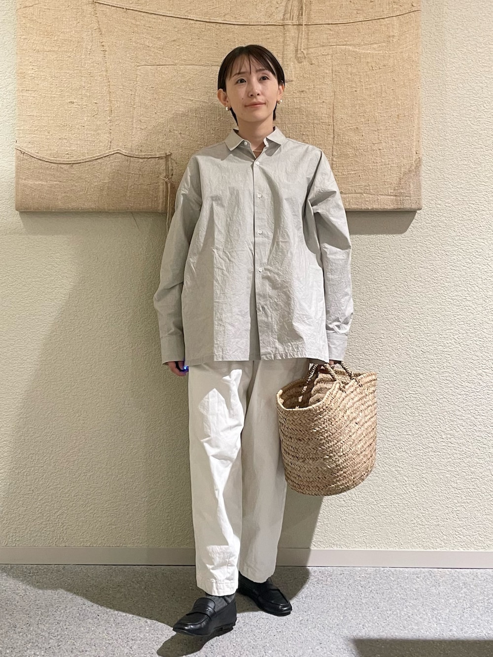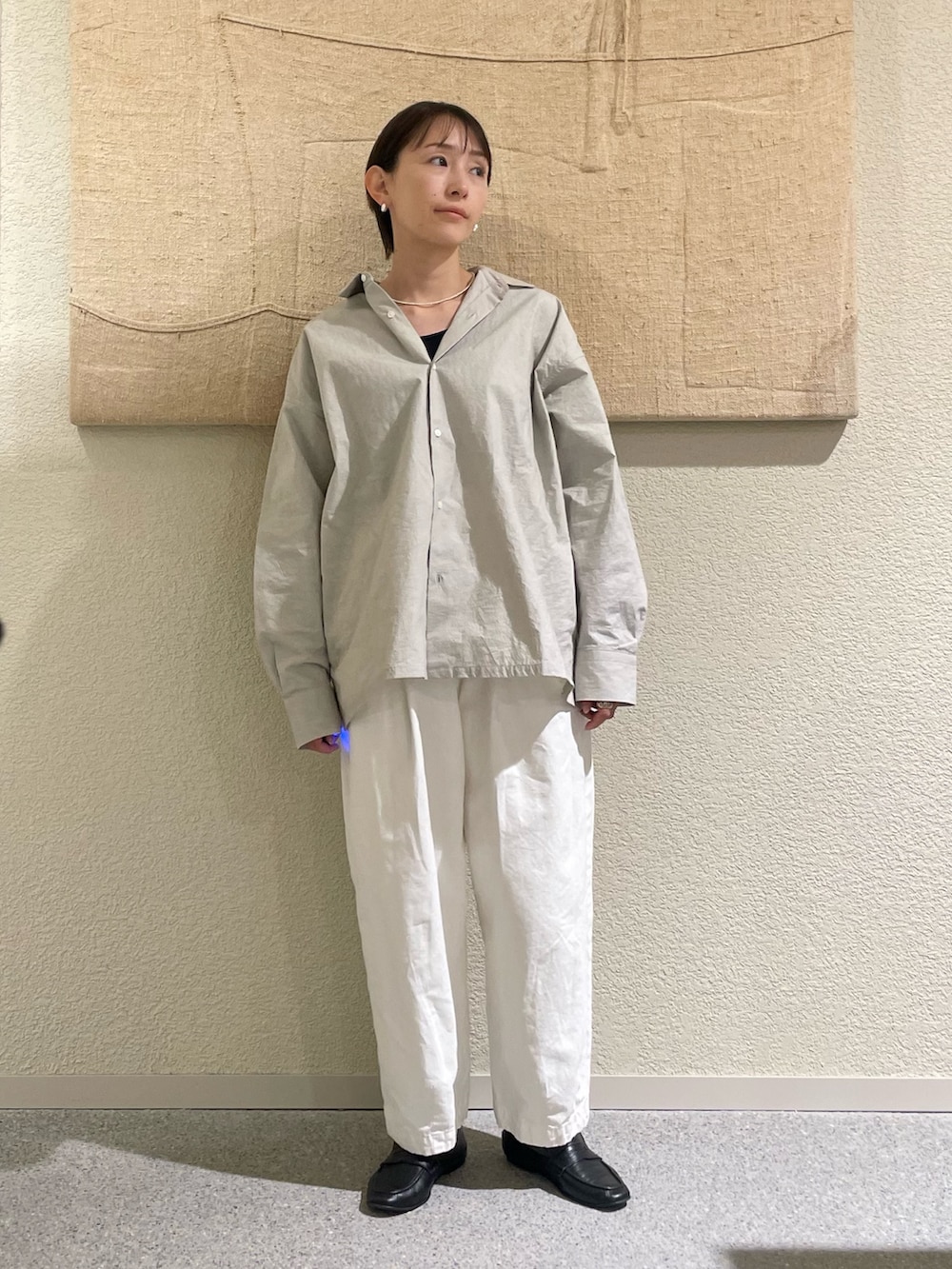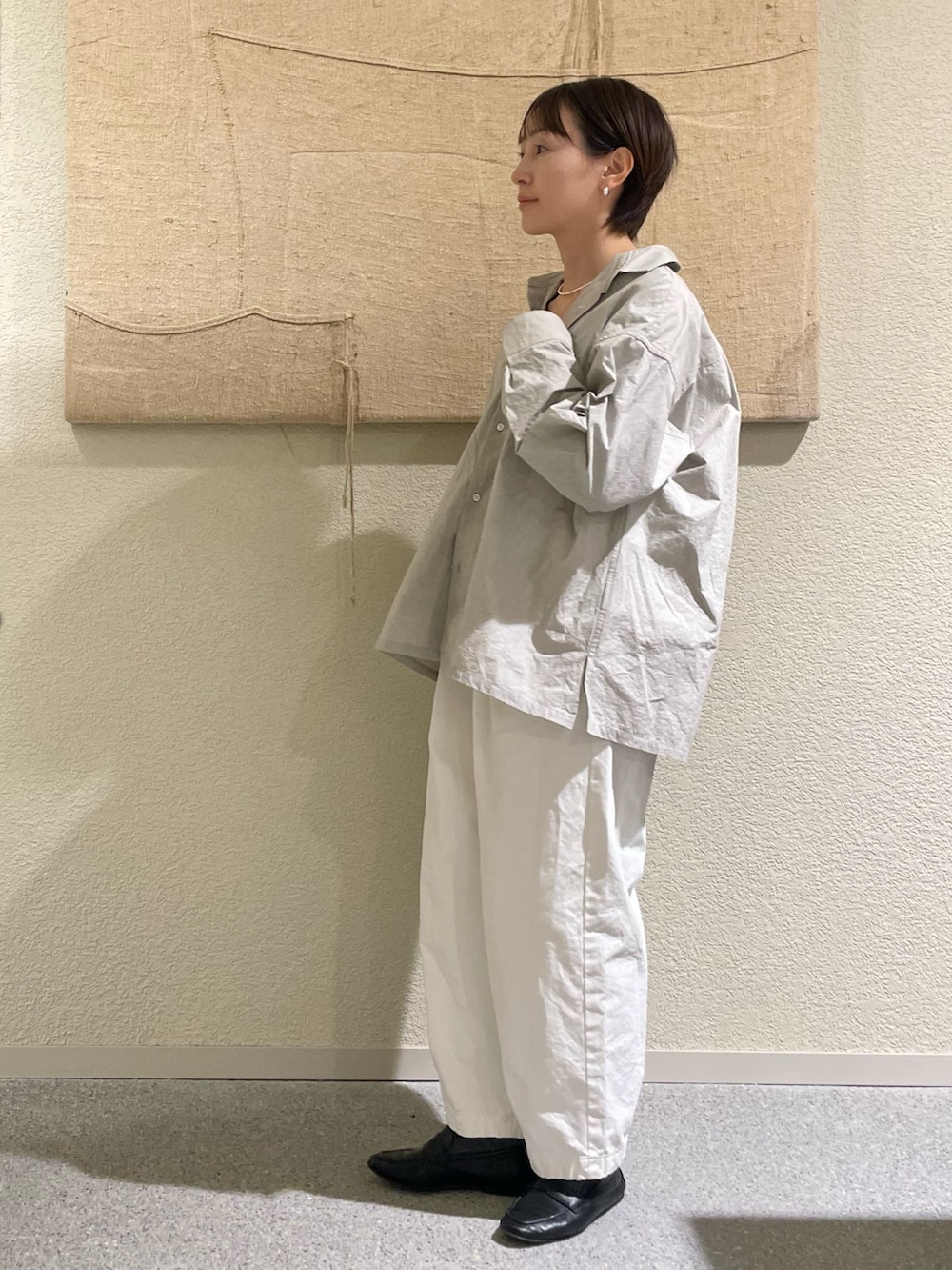 定番コットンクロップドパンツ、L/GRAY✖️OFFでとことん爽やかな合わせはとってもクリーンでいいですね✨