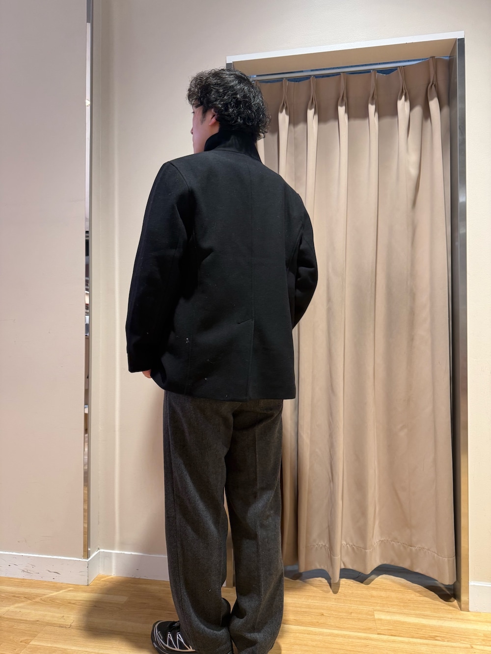 ウールブレンドスタンドカラーコートを使ったきれいめカジュアルスタイルです!