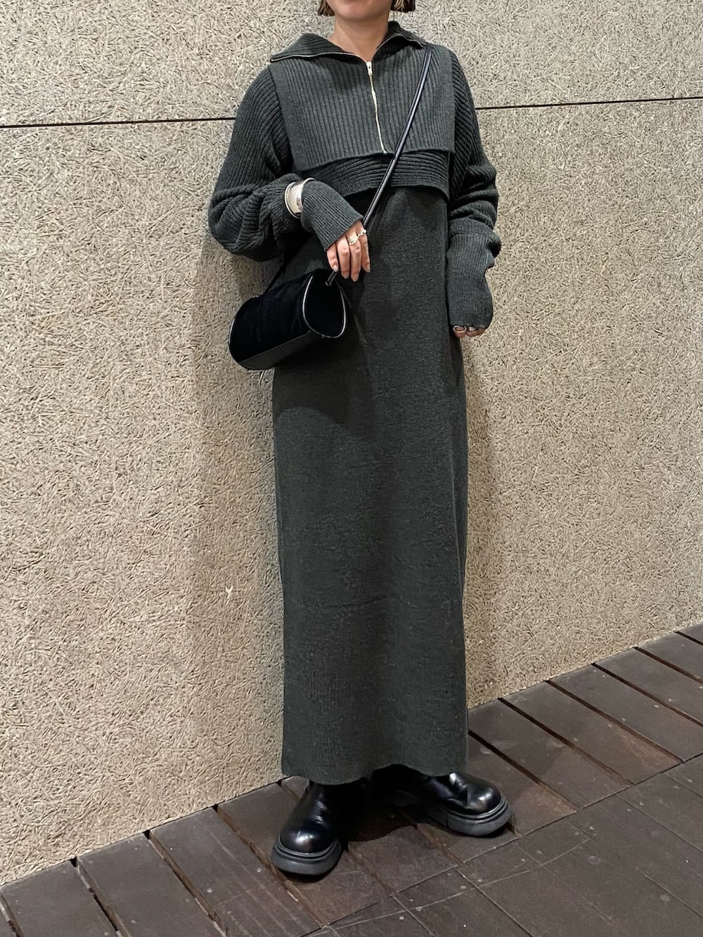 KBFハーフZIPレイヤードニットワンピース- カラー: