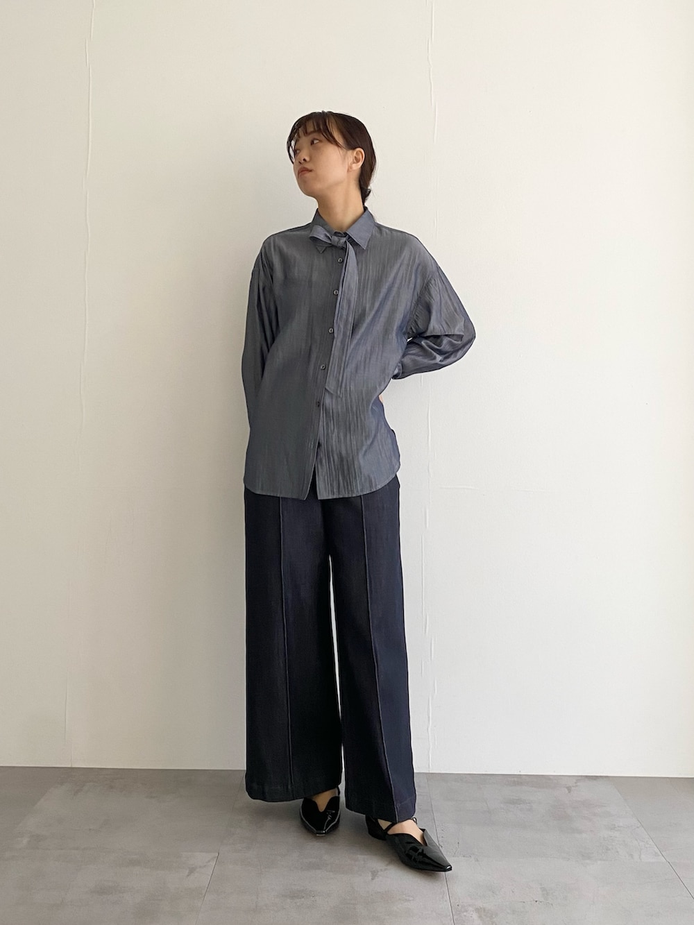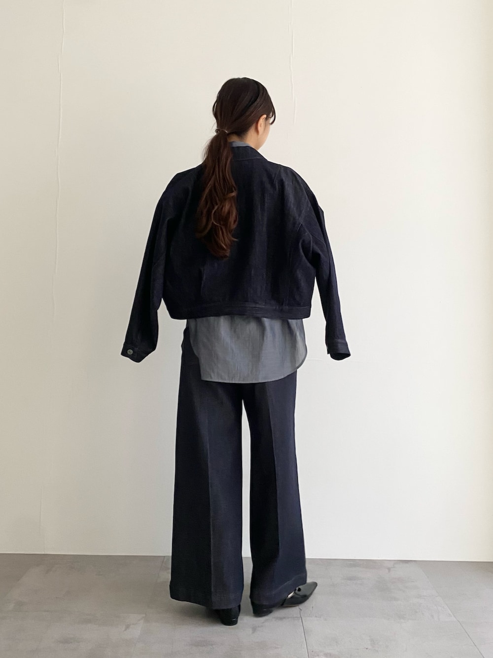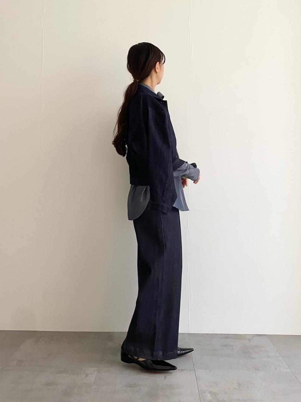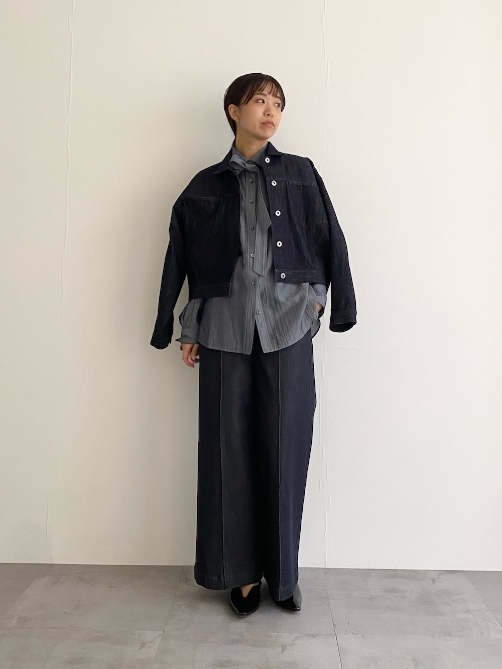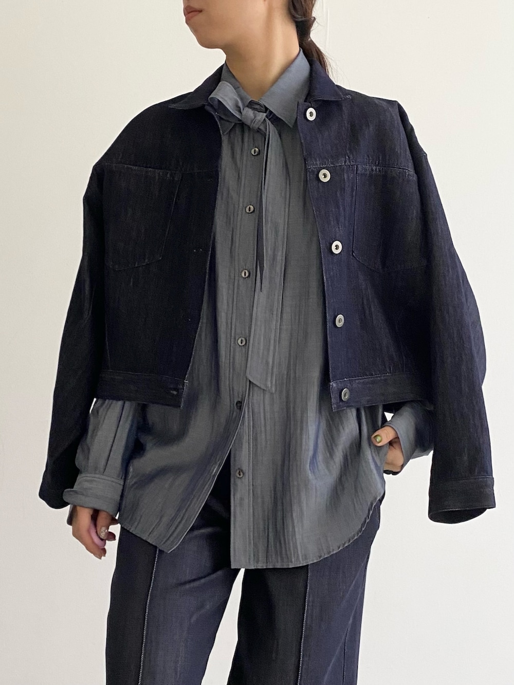 インナーに合わせたブラウスまでデニム!