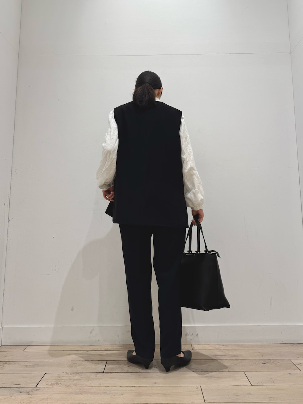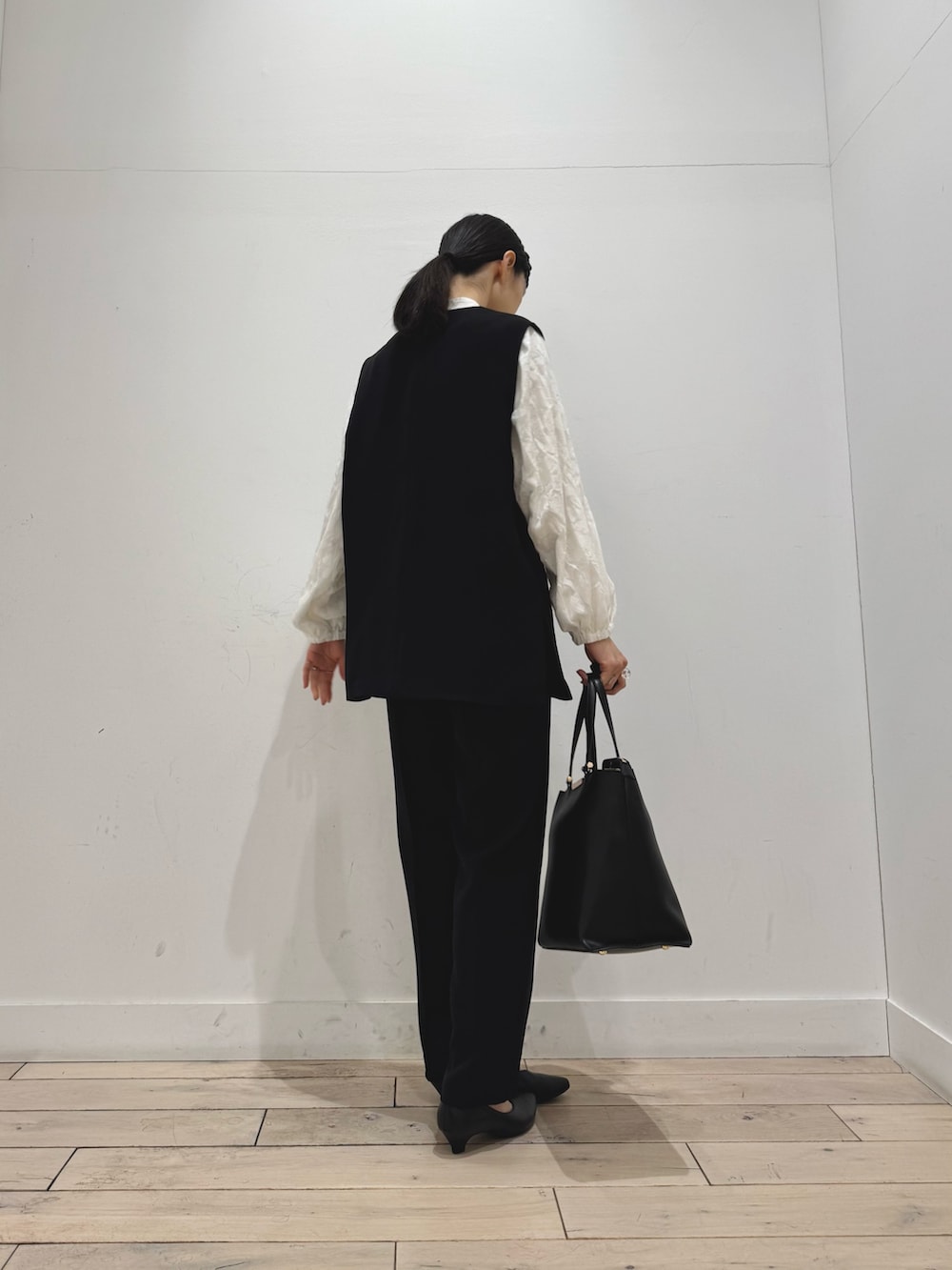 同系色の花柄なので上品な印象です。袖にボリュームがあり、ベストと相性抜群です◎