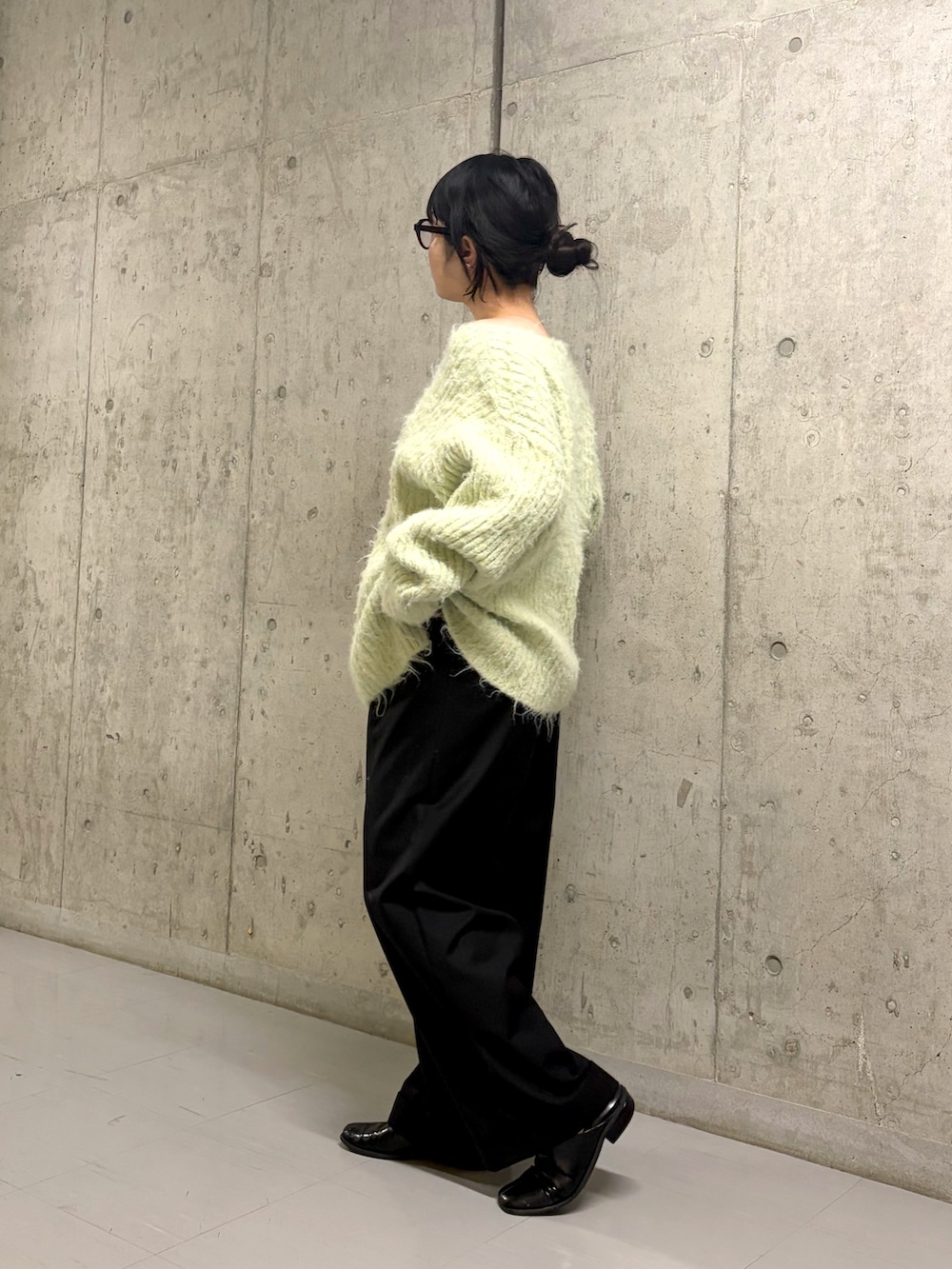 ニットはゆるっとしたシルエットで少しオーバーサイズですが、低身長の方でも大きすぎないサイズ感で着ていただけます✨