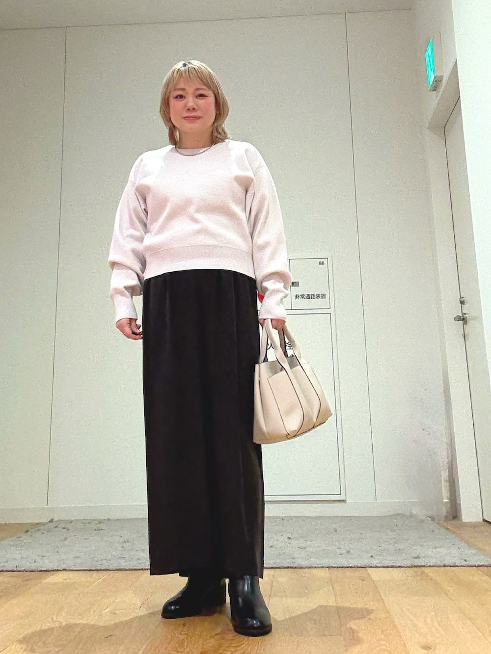 淡カラーのバッグで全体のトーンを揃えて優しい印象に◎
