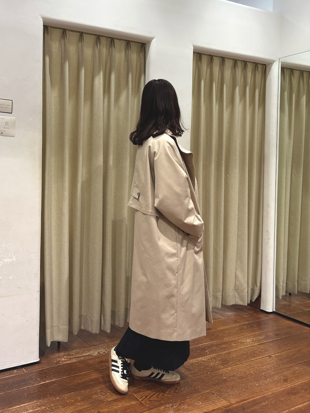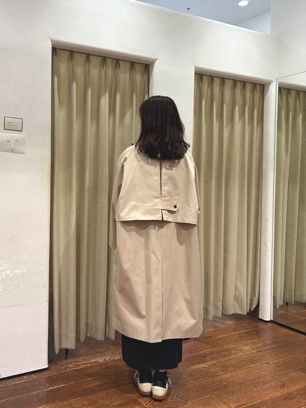 バックデザインが可愛いコートはスタンドカラーとしても着ることができ、生地感もしっかりとしており、春先まで大活躍する一枚です。