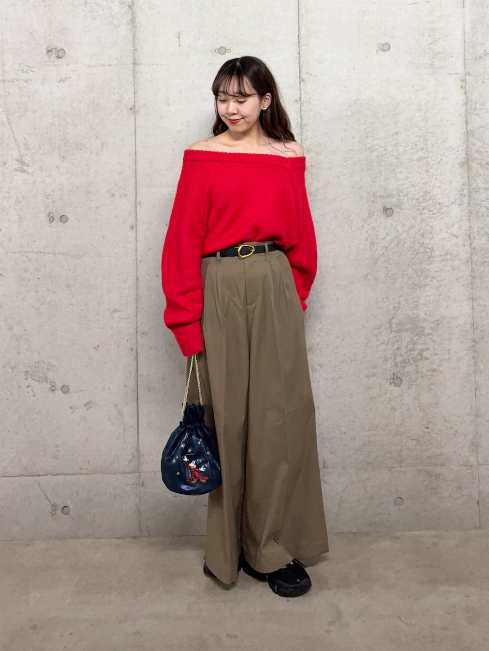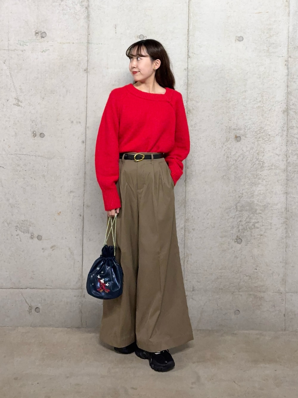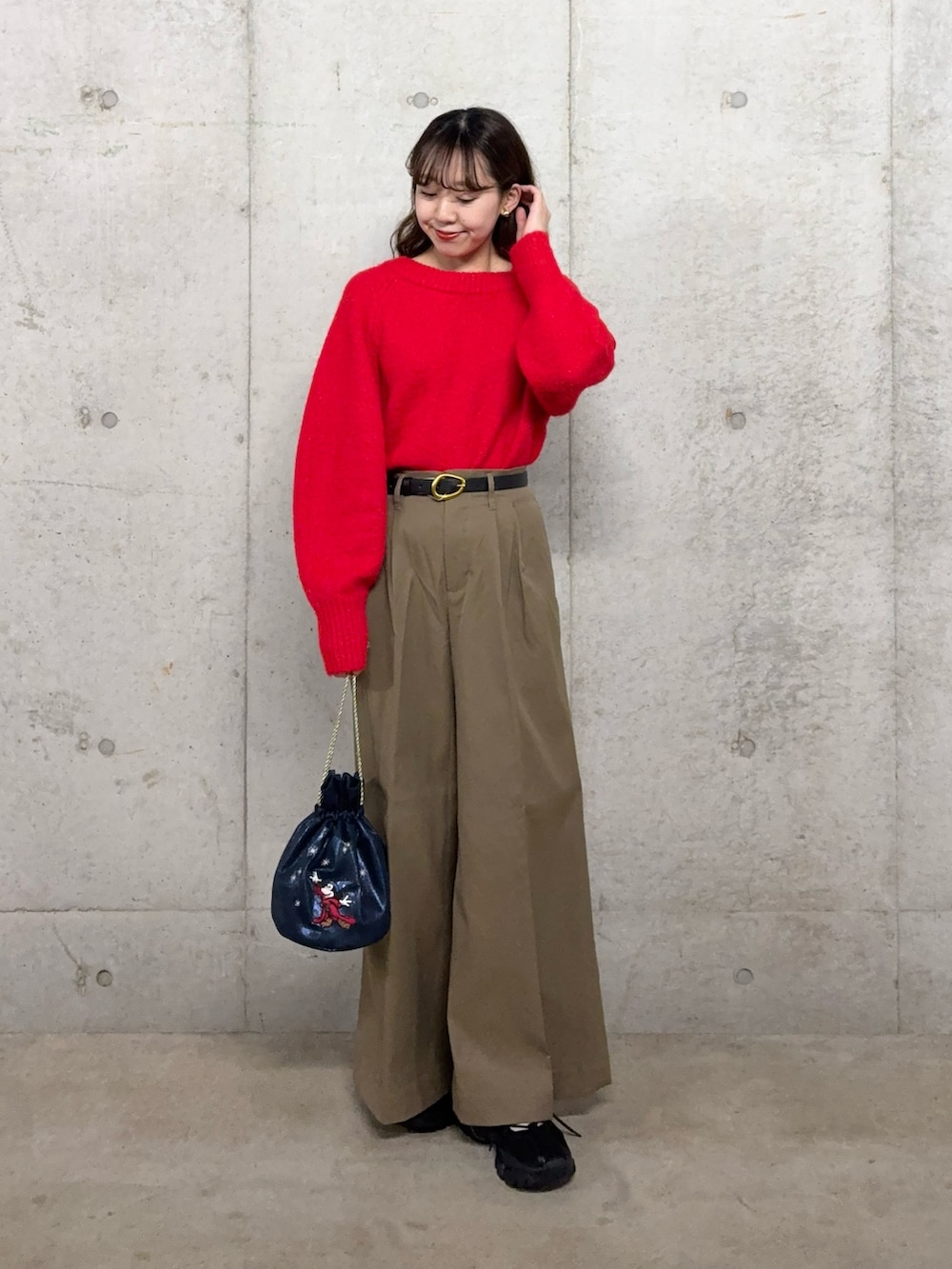 きれいめパンツですが太めベルトでカジュアルダウン🍓