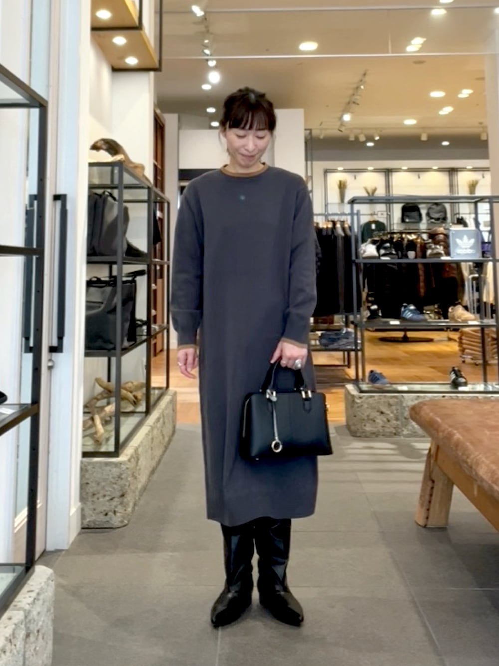 ロングブーツと綺麗めバッグを合わせました✨