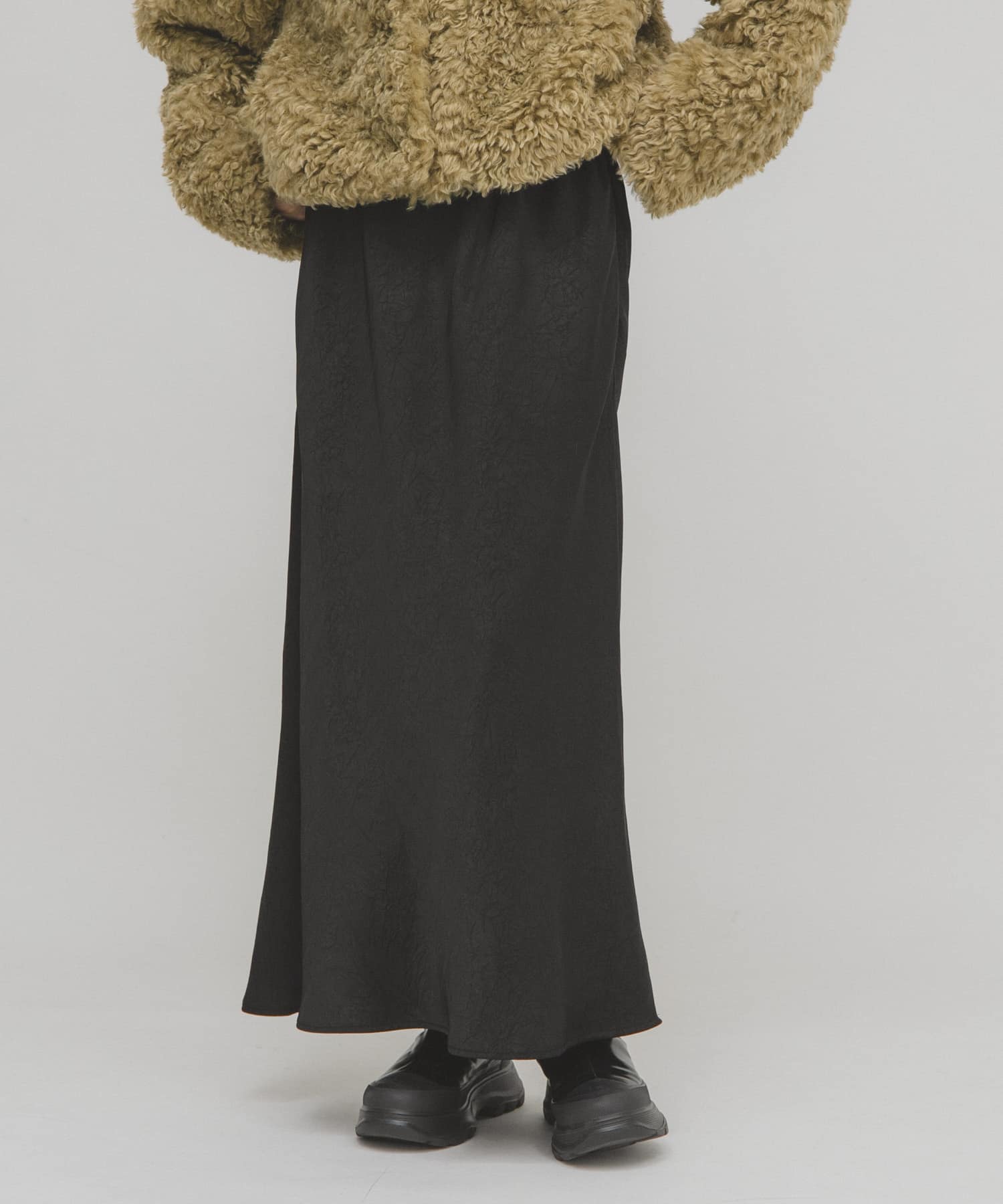 そしてオーバーサイズなトップスとぜひ合わせていただきたい、サテンのIラインスカート!
