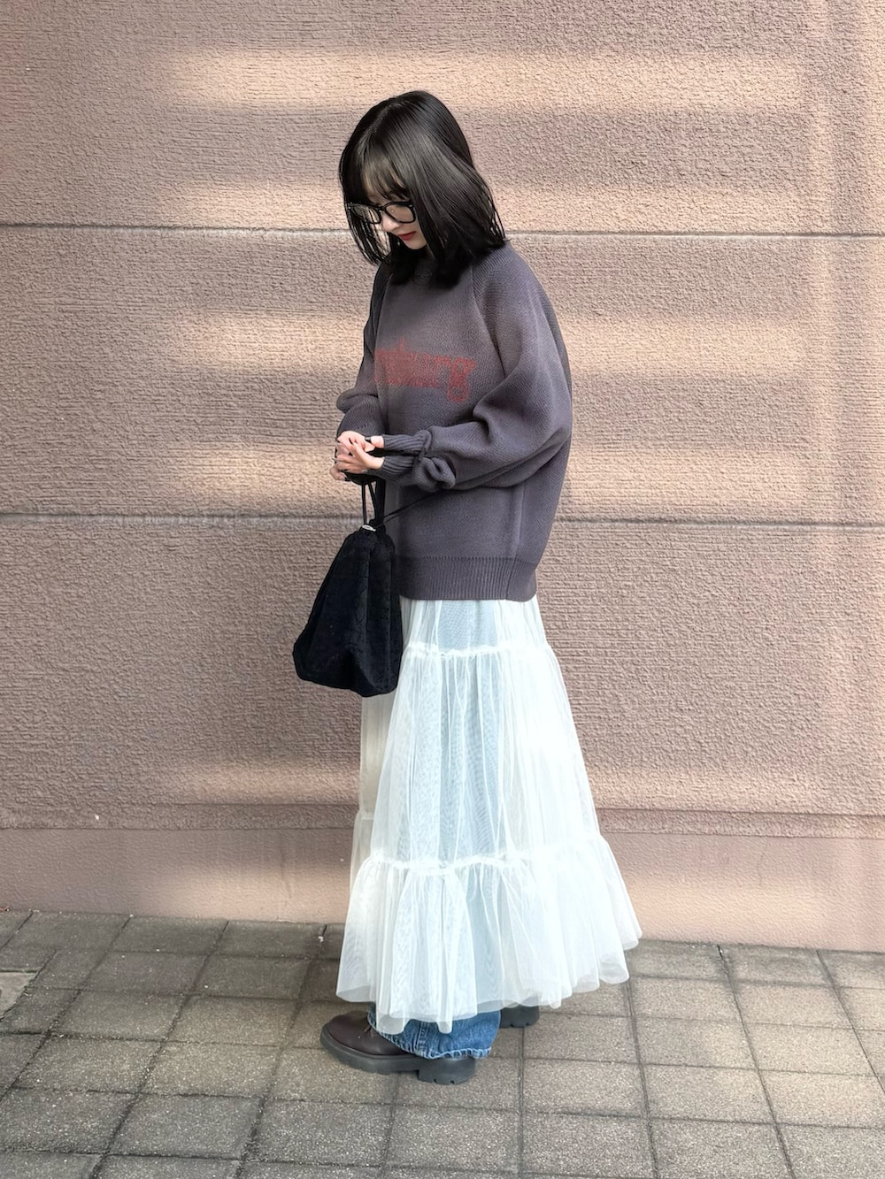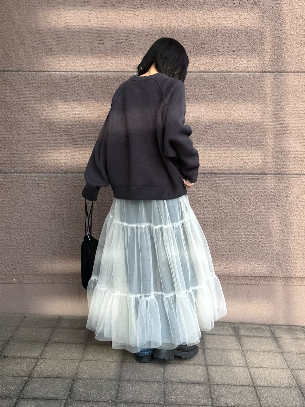 チュールスカートはデザインと色味が可愛いアイテムになっています!ふんわり感があってとても可愛いです!透けすぎないのでレイヤードしていただきやすいかなと思います!