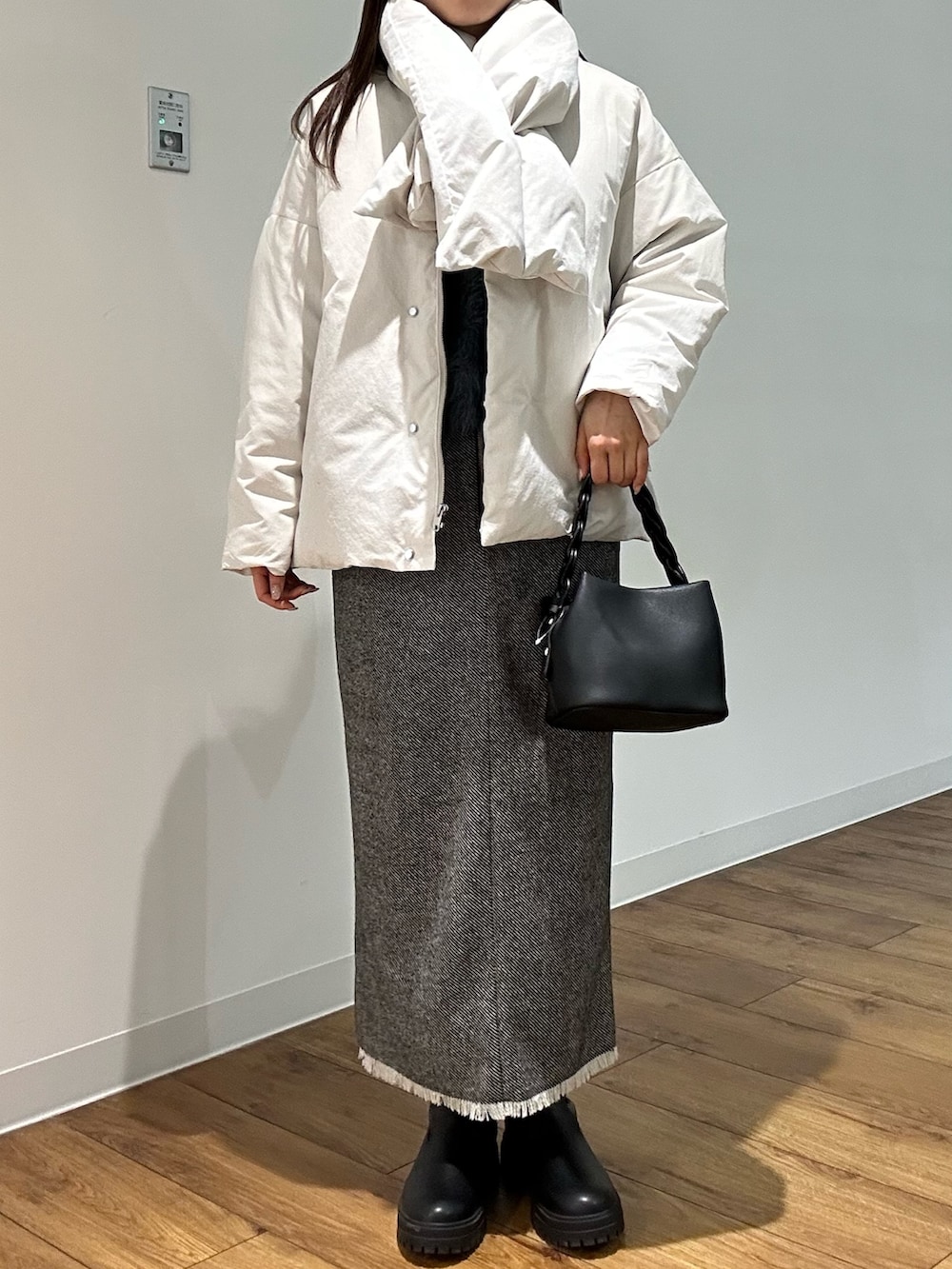 SENSE OF PLACEツイードフリンジジップスカート- 着用カラー: