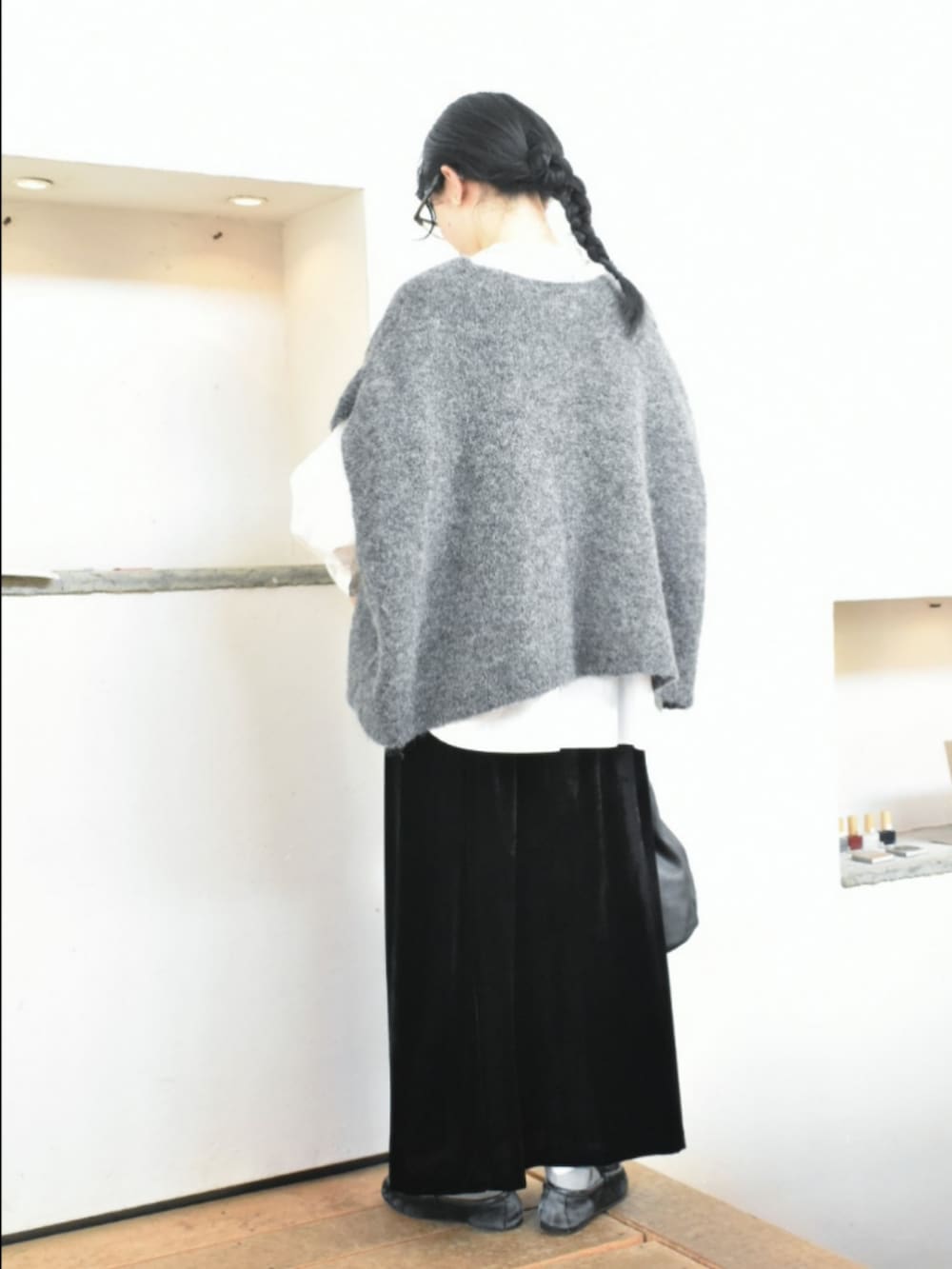 楽ちんなのに綺麗見えする、かぐれのシルクレーヨンベルベットスカート。