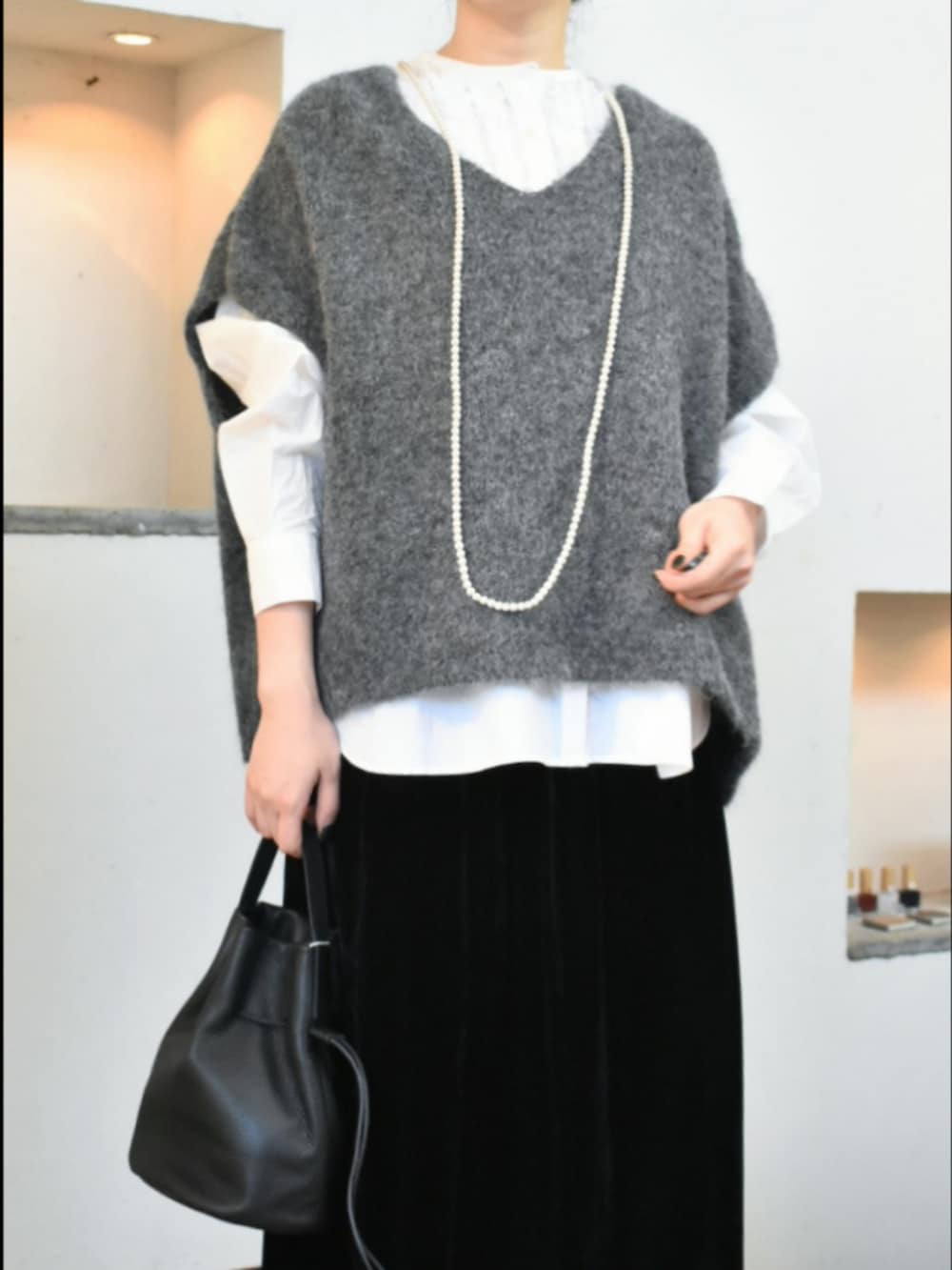 アルパカ混のふわっと軽い着心地のベスト。