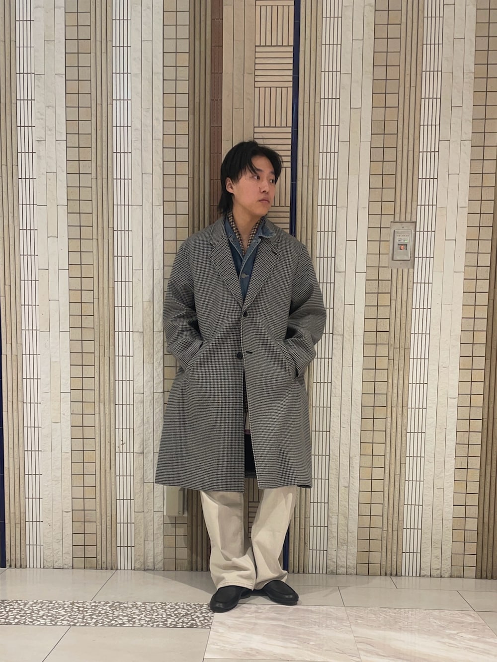 さて、服にも同じように時にはカオスを楽しむ心が合っても良いかもしれませんね。チェックにチェック。別色のデニムの上下。優しい色味ではありますがクセが混じります。ニコニコしている人間が一番怒ると怖い時の様なサイコな雰囲気です。