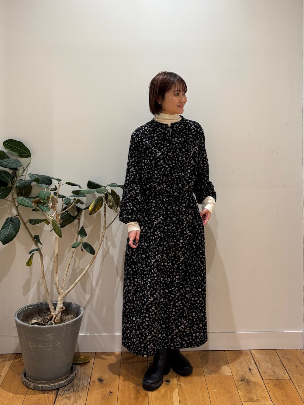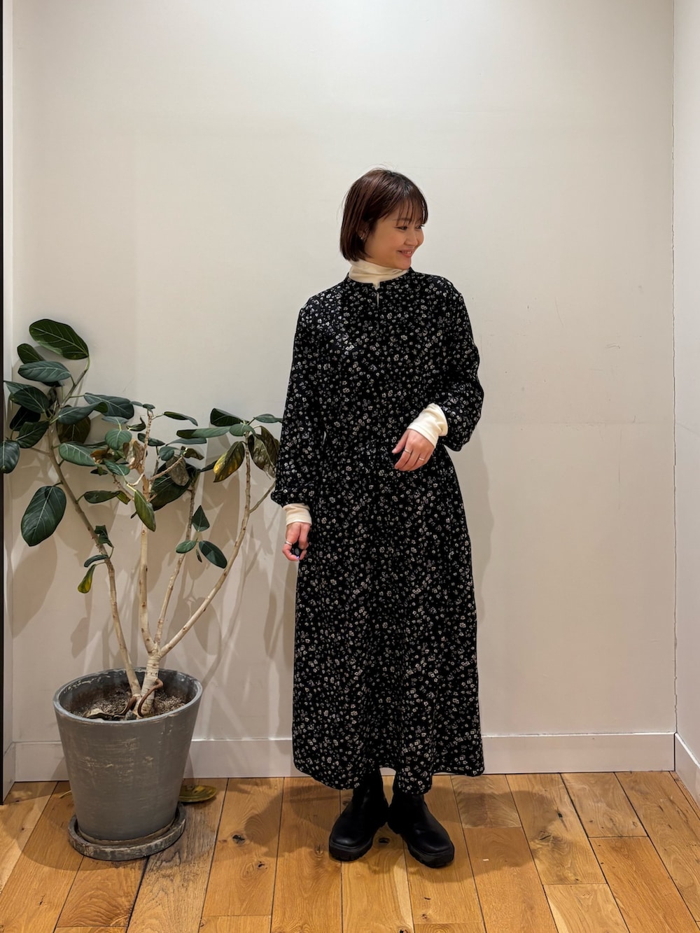 小花柄と黒地の組み合わせなのでかわいくなりすぎずに着ることができますよ◎