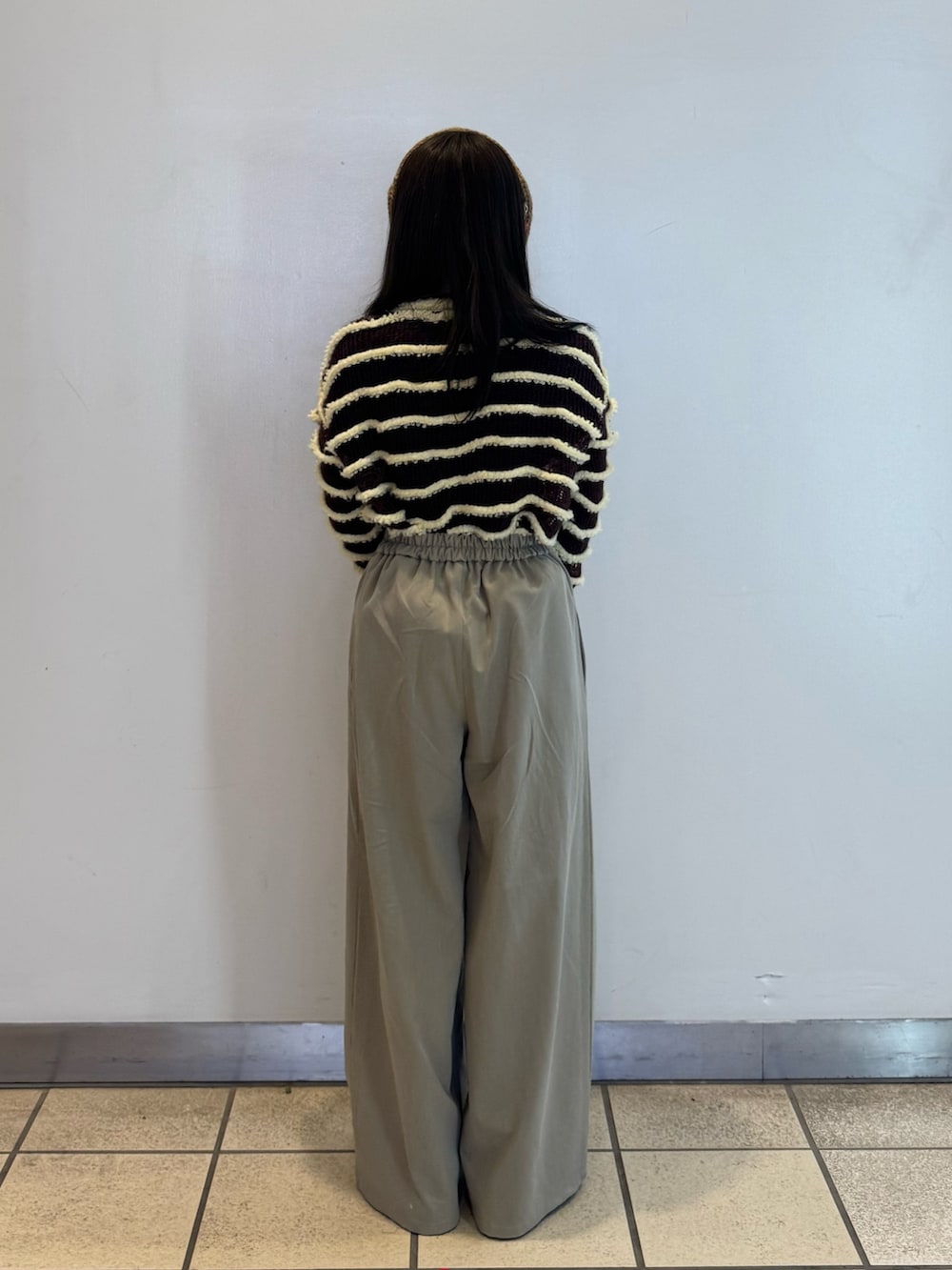 ボトムス爆笑ワイドイージーパンツでシルエットがとても綺麗なので低身長~高身長でも脚長効果ができます!!!