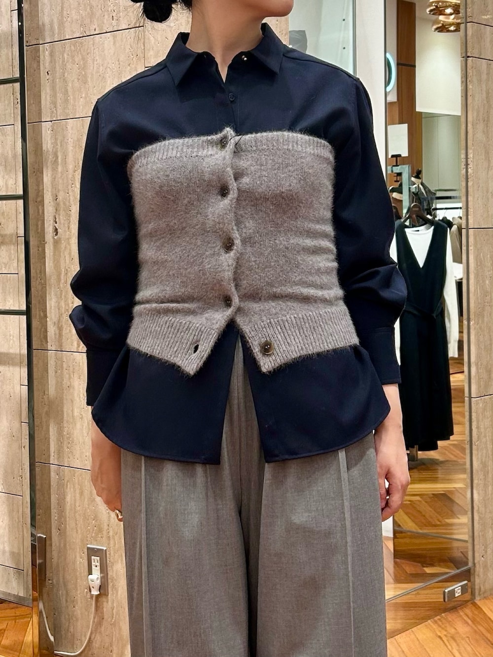 ROSSOエアリーニットボタンデザインビスチェ- カラー: