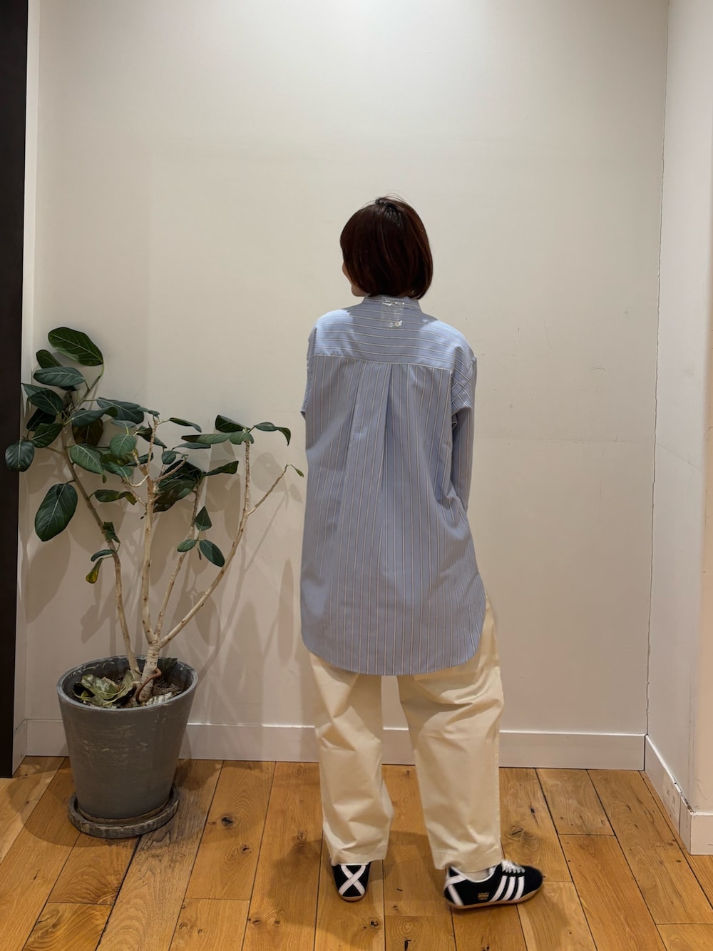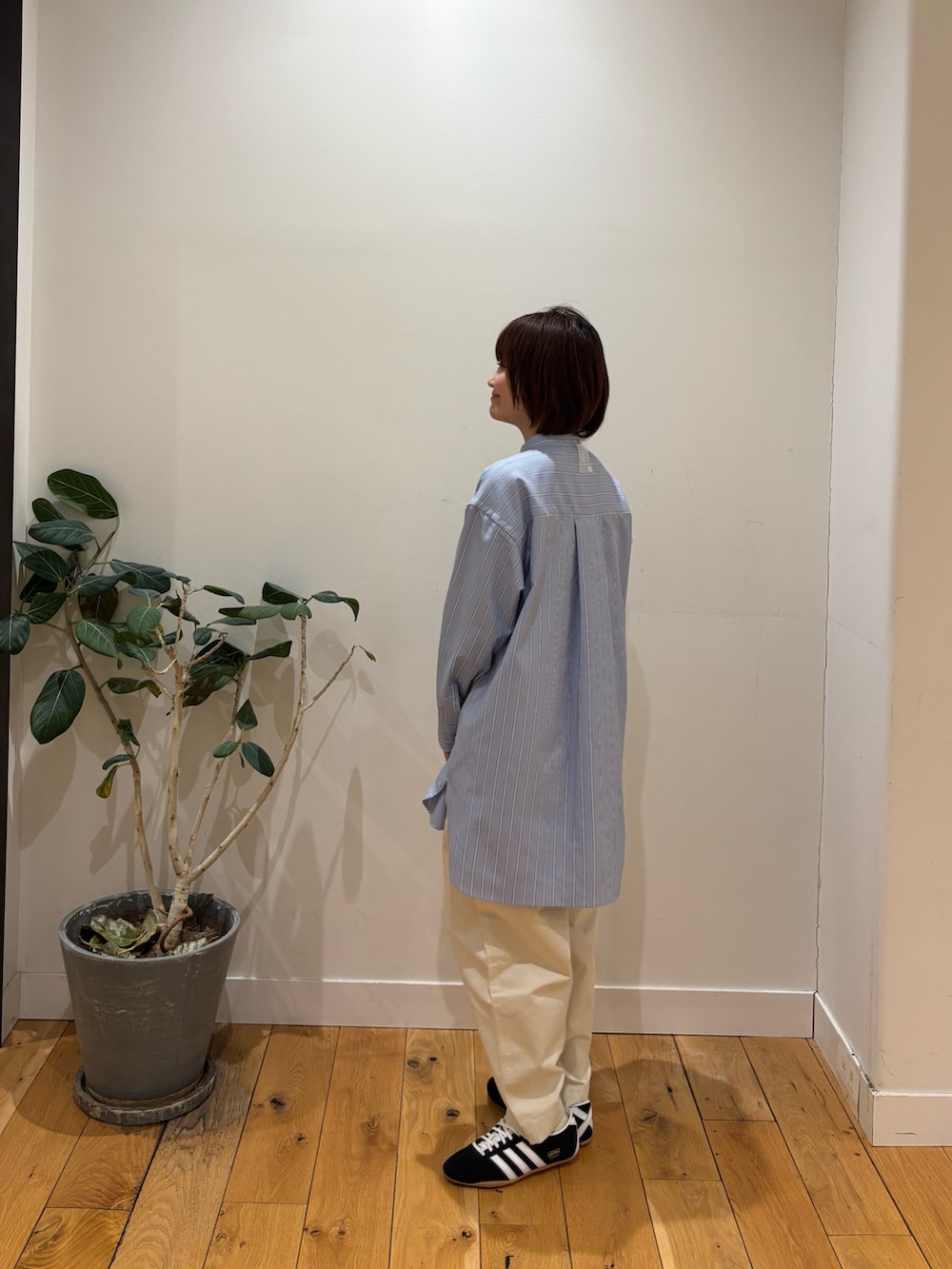 全体がゆるっとしているのでadidasの細身のスニーカーですっきりさせています☻