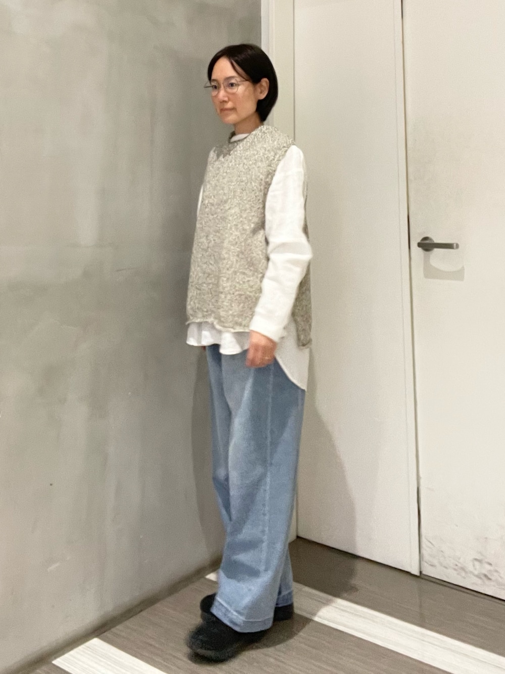 ベストを合わせたレイヤードスタイル。
