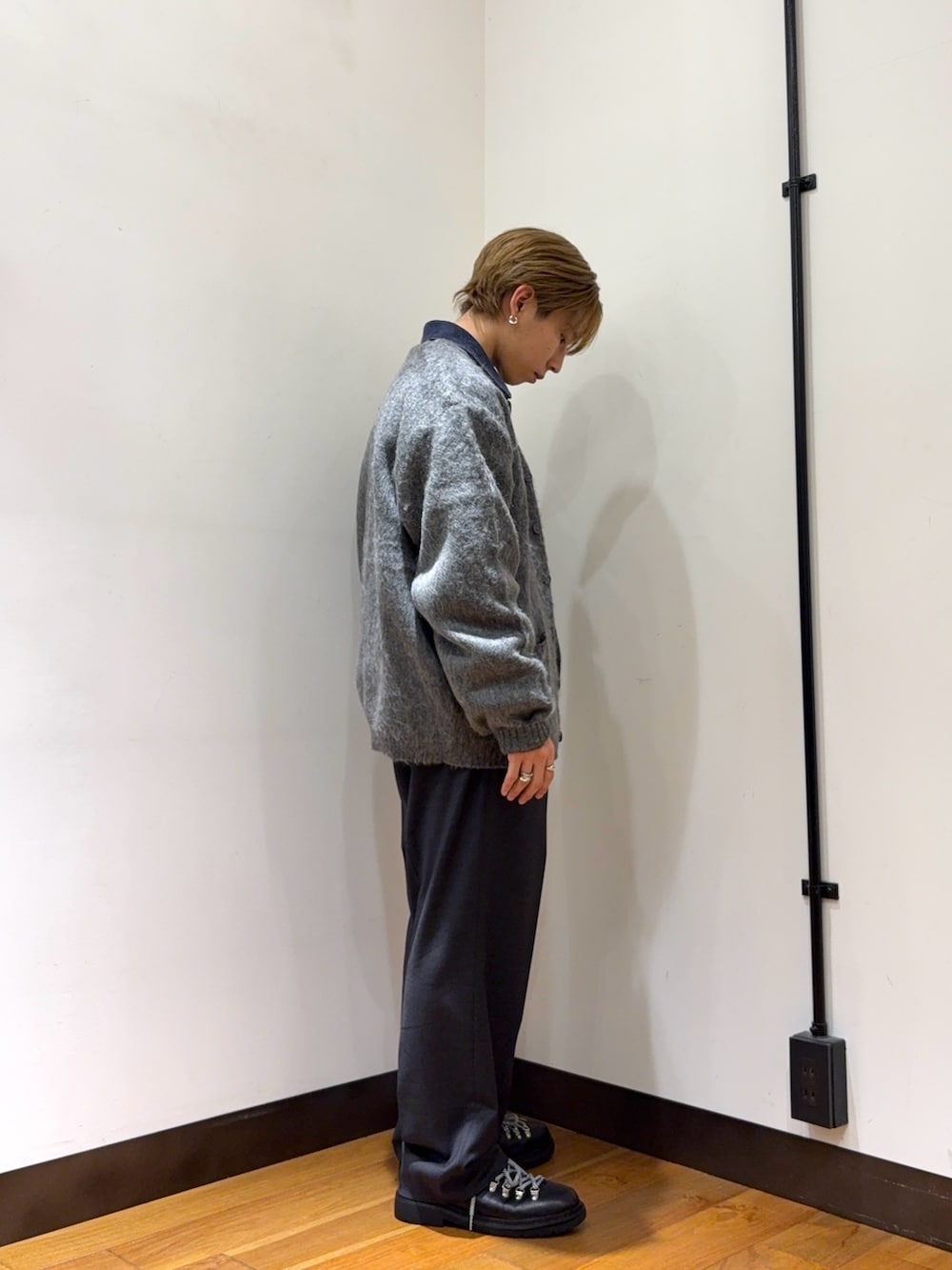 本日(1月16日)発売のSEVEN BY SEVENのジャケットにカーディガンを合わせてみました。カーディガンを合わせるだけでヌケ感が出せるのでオススメです◎