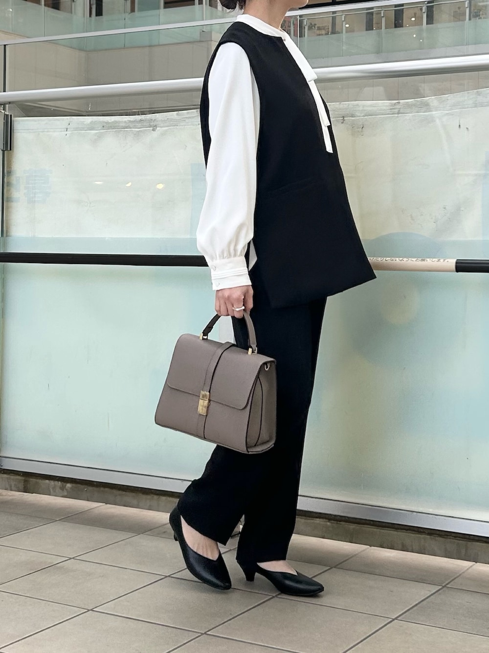 ベストは長めの丈で腰まわりやお尻をカバーしてくれます。