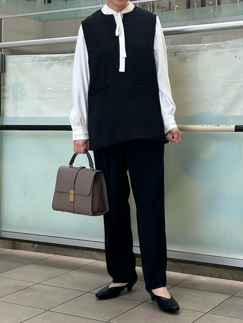 ブラウスは襟元がポイントです。