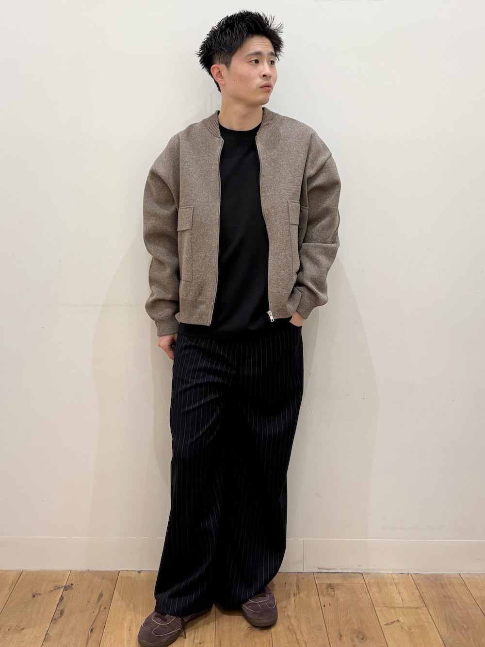 パンツは、ゆったりワイドシルエットのストライプパンツを合わせました!
