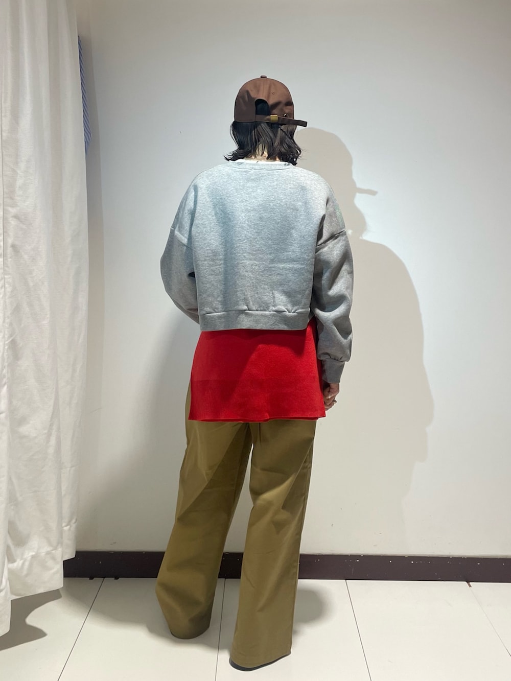 差し色でカーディガンは腰に巻いていますがスウェットの上に重ねてもかわいいです🧶
