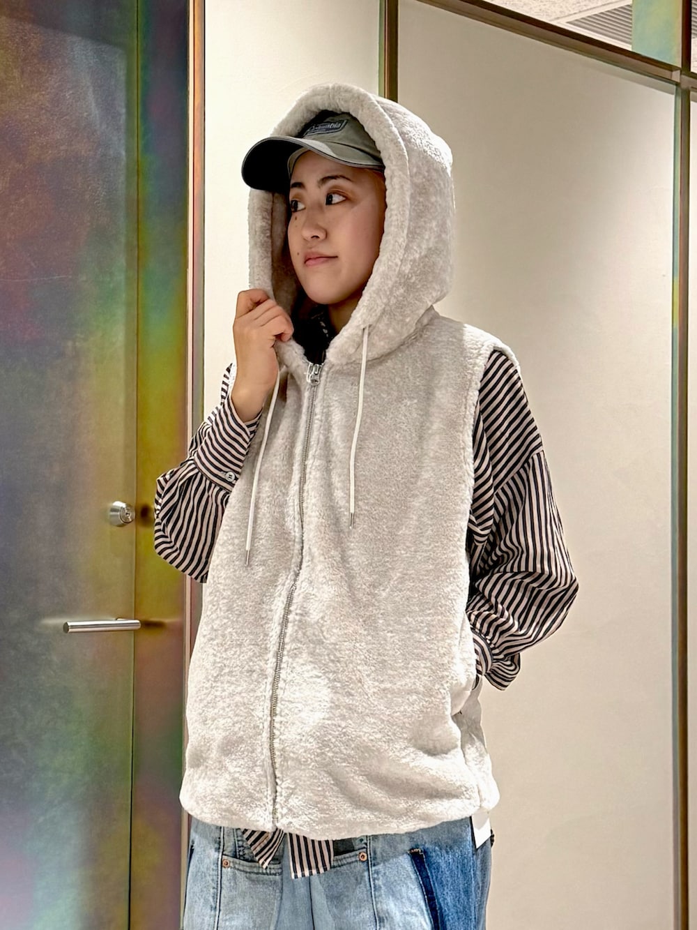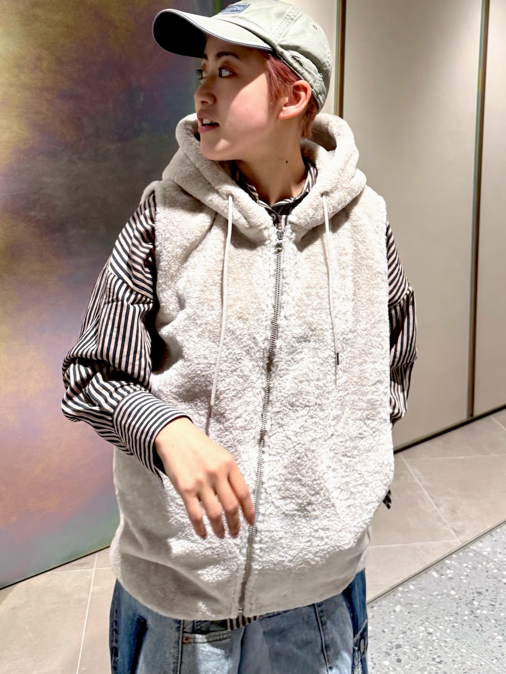 ボアベストで春っぽく合わせましたが