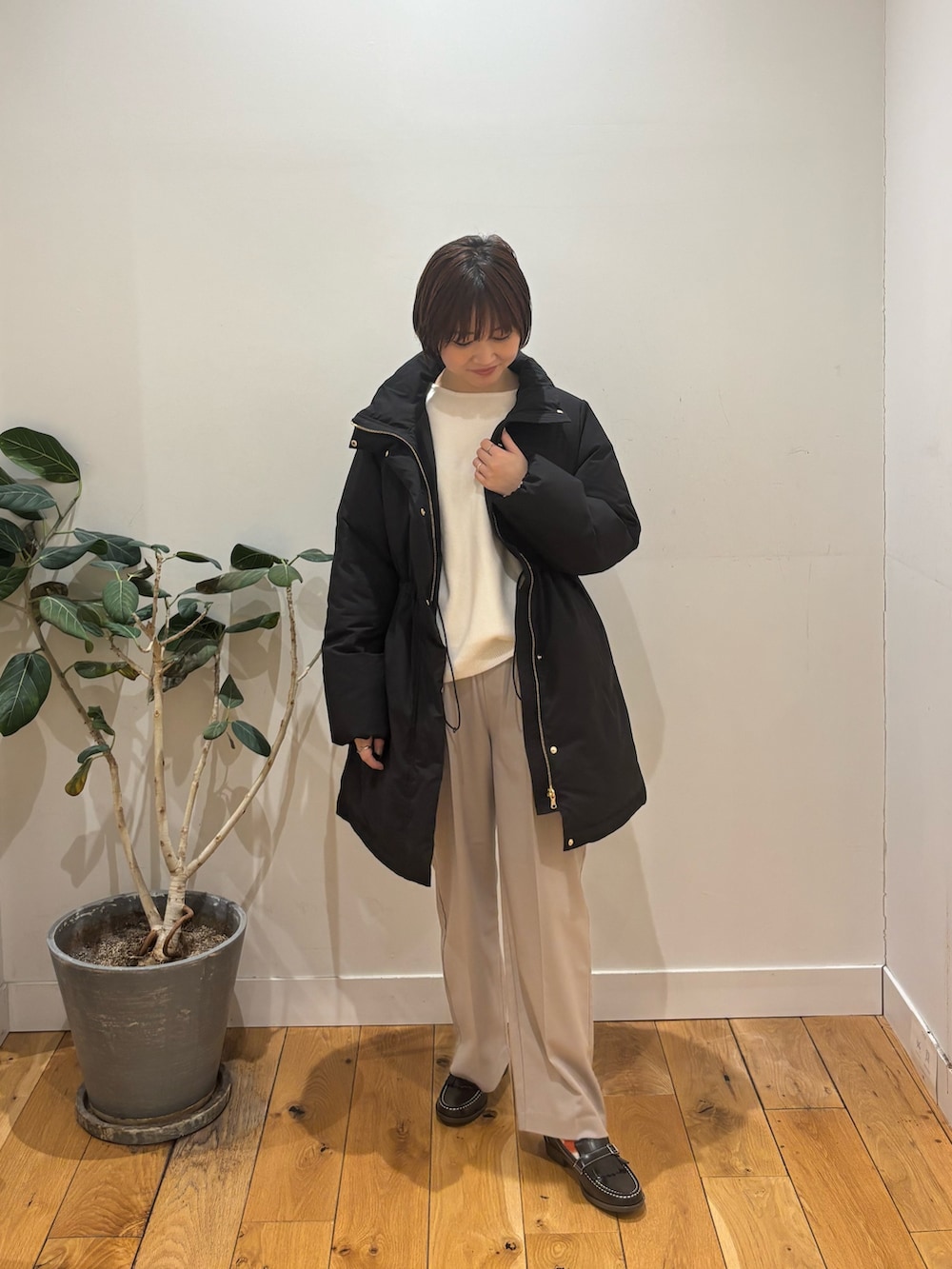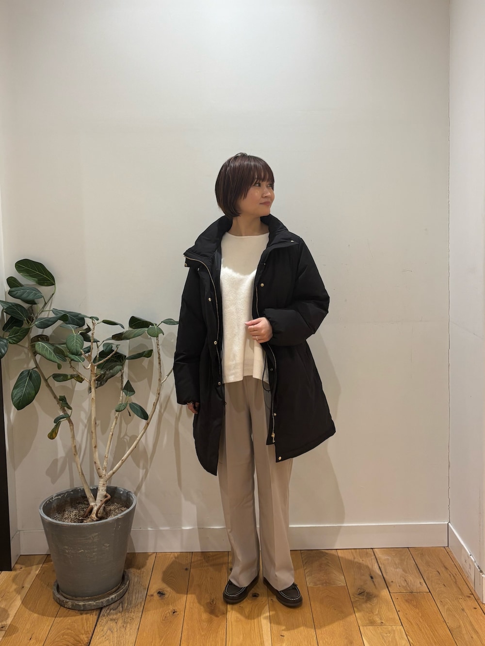 スタンドカラードロストダウンコート着用しています!長さがあるのであたたかさもより感じやすく何よりも軽いです☻