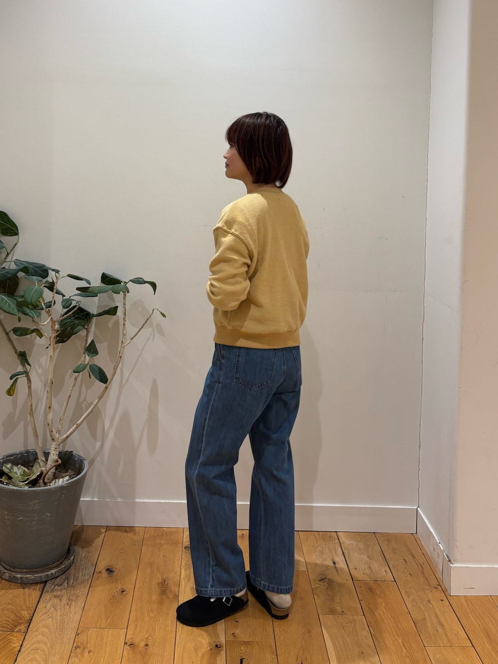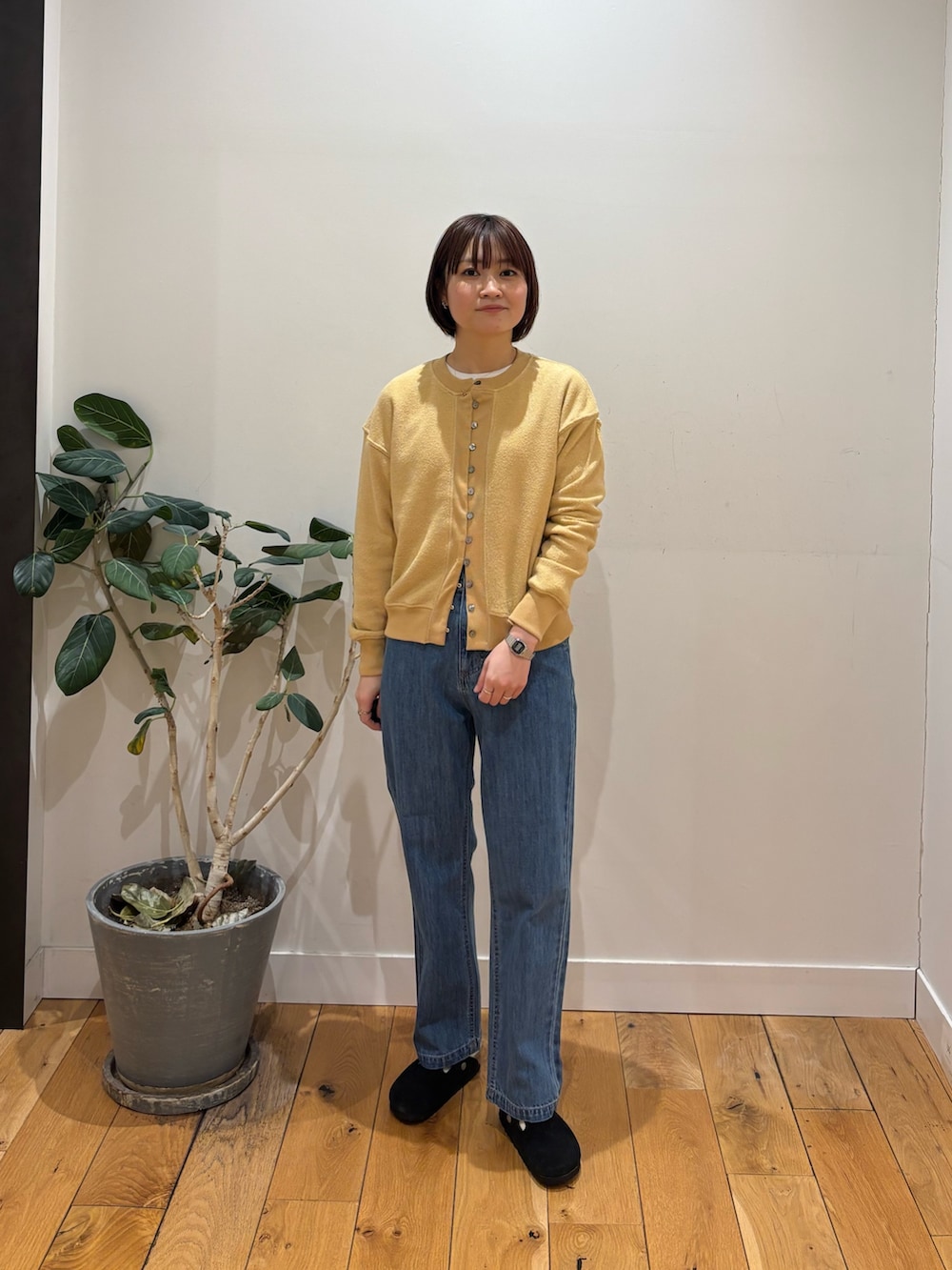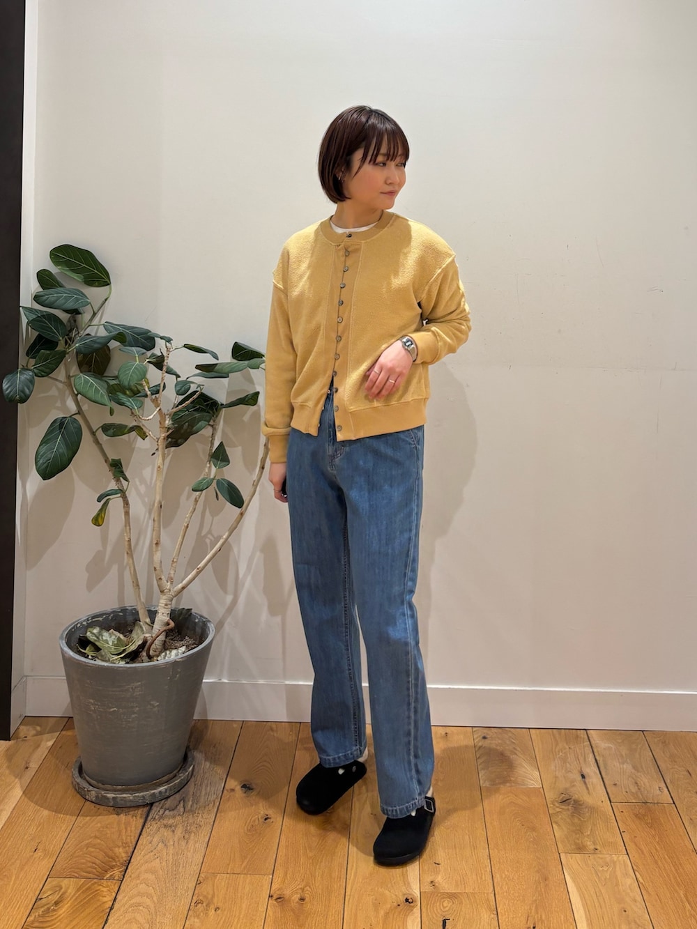 新入荷アイテムのカーディガン着用しています!肌触りがやわらかくニットともスウェットとも異なるようなもちもちの感触です。