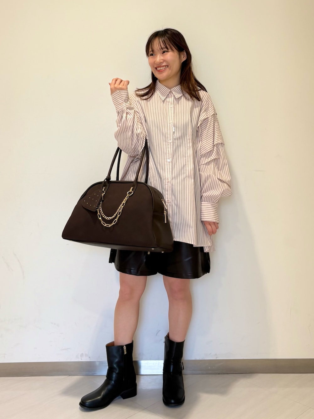 今回はかっこよくしたかったのでレザー側で着てみました!