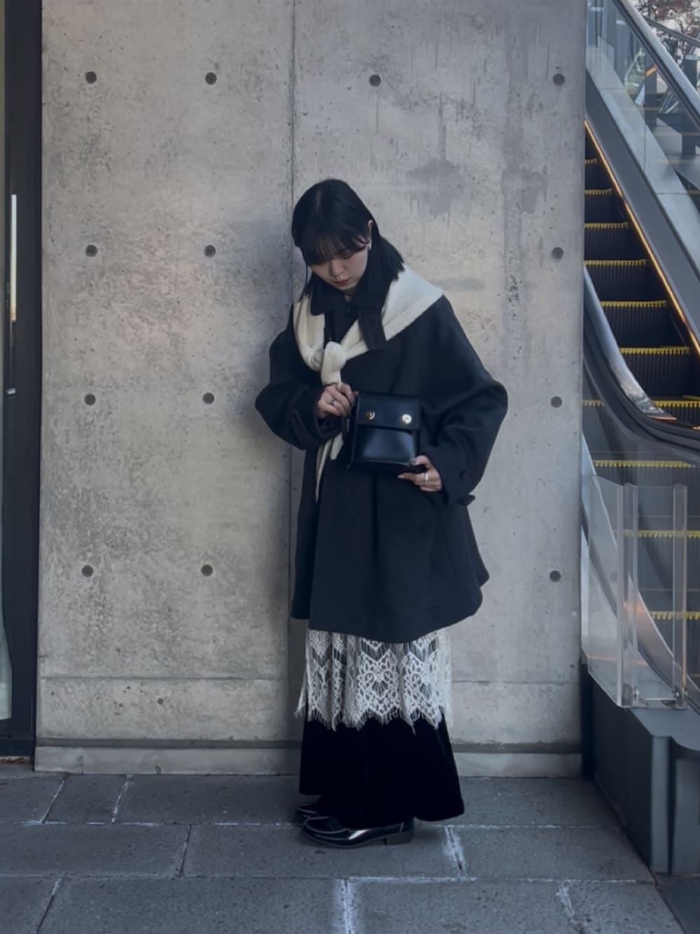 レースとニットスカーフが冬っぽさを演出してくれて大人かわいいコーデにまとまってます!