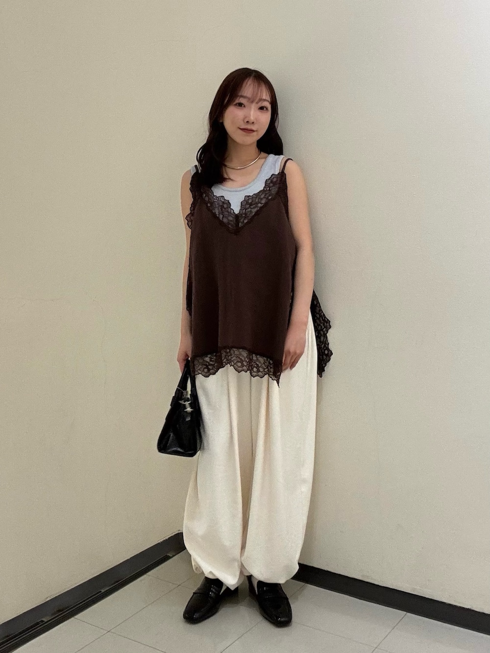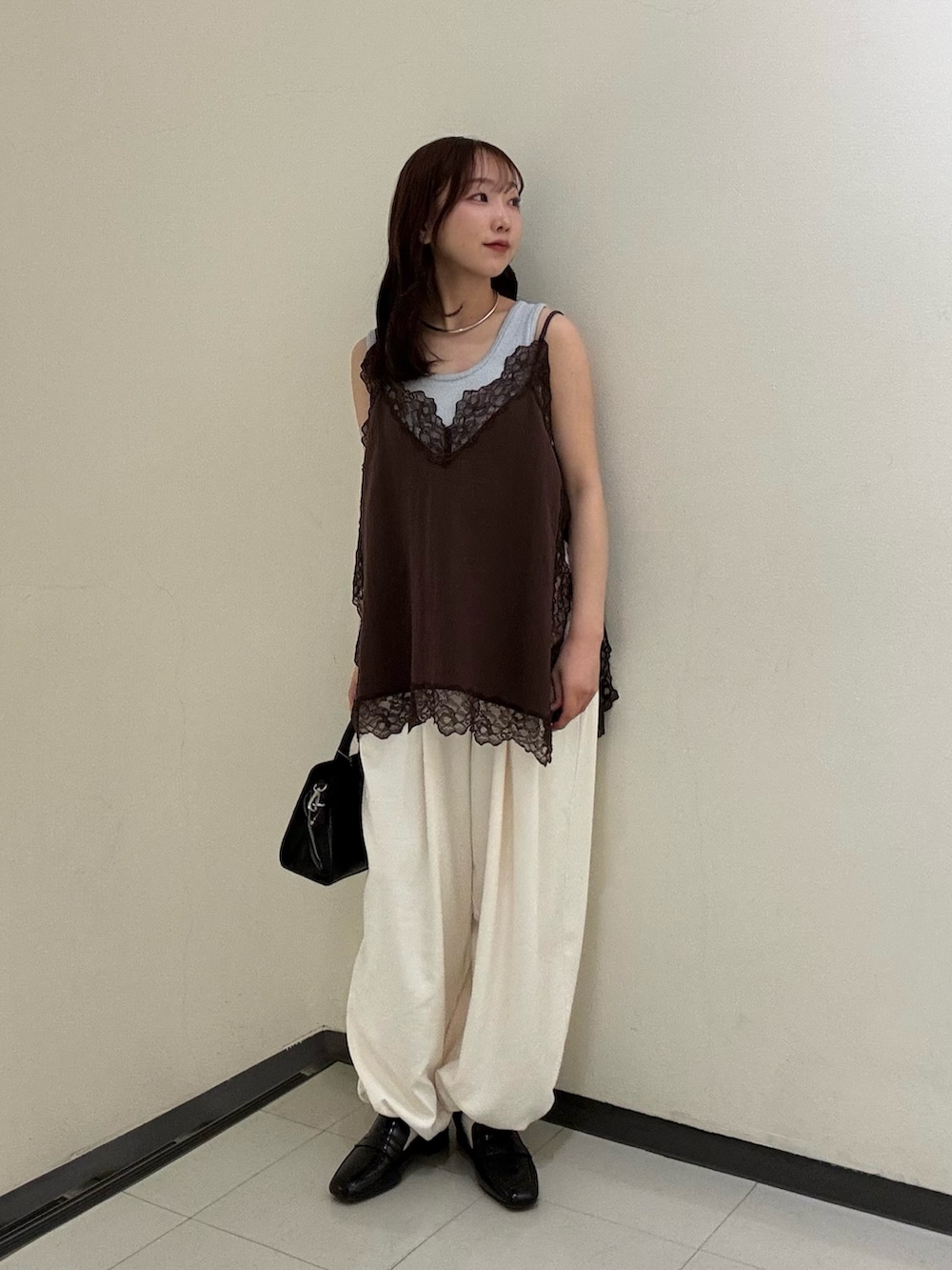 大人気のレースキャミをインナーにキレイめカジュアルコーデを組んでみました✨