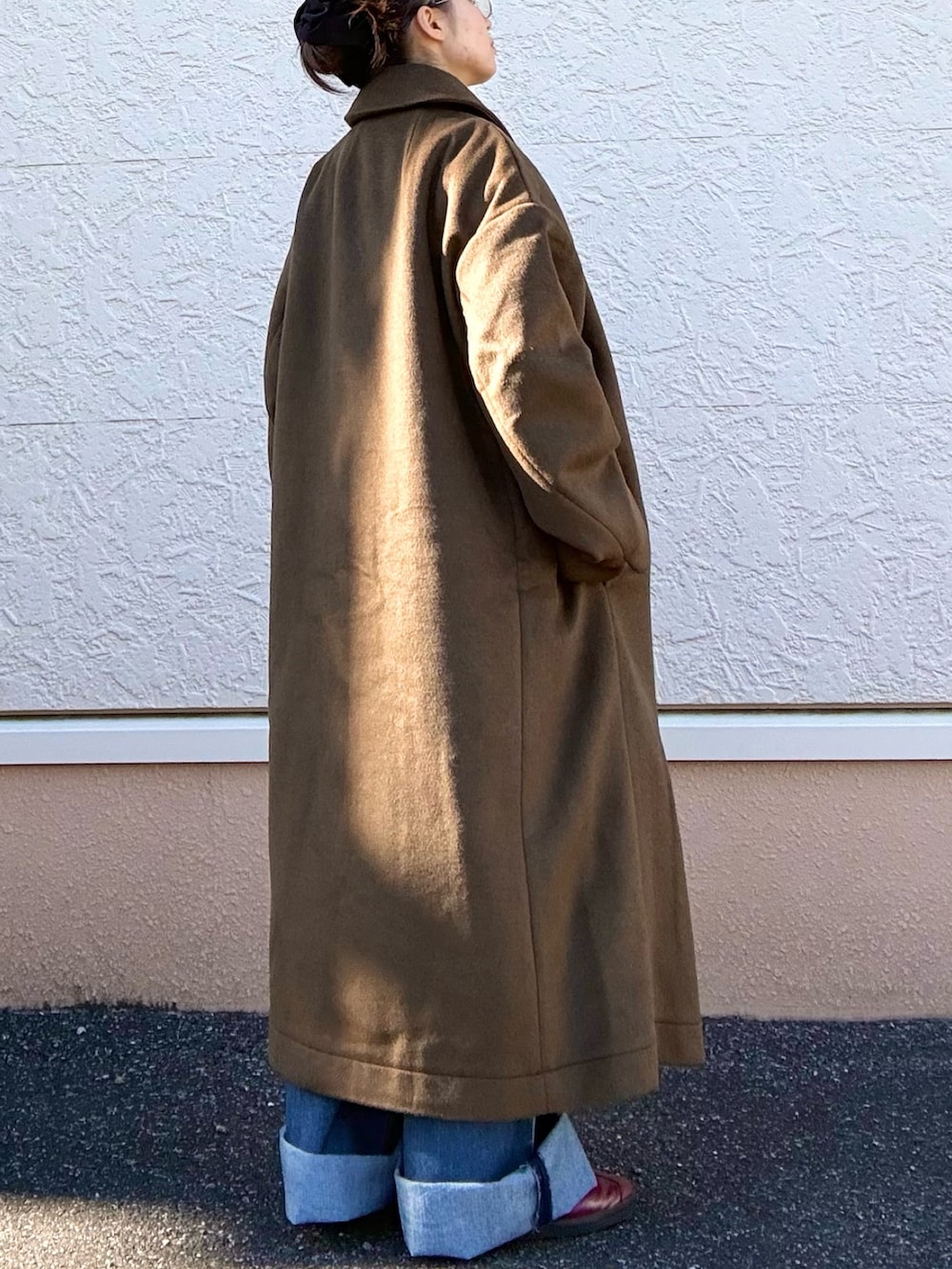 シャギー素材の地厚ニットに、ウール素材のしっかりとしたコート!
