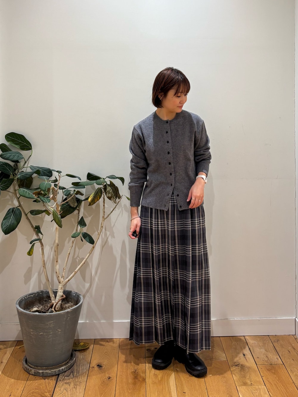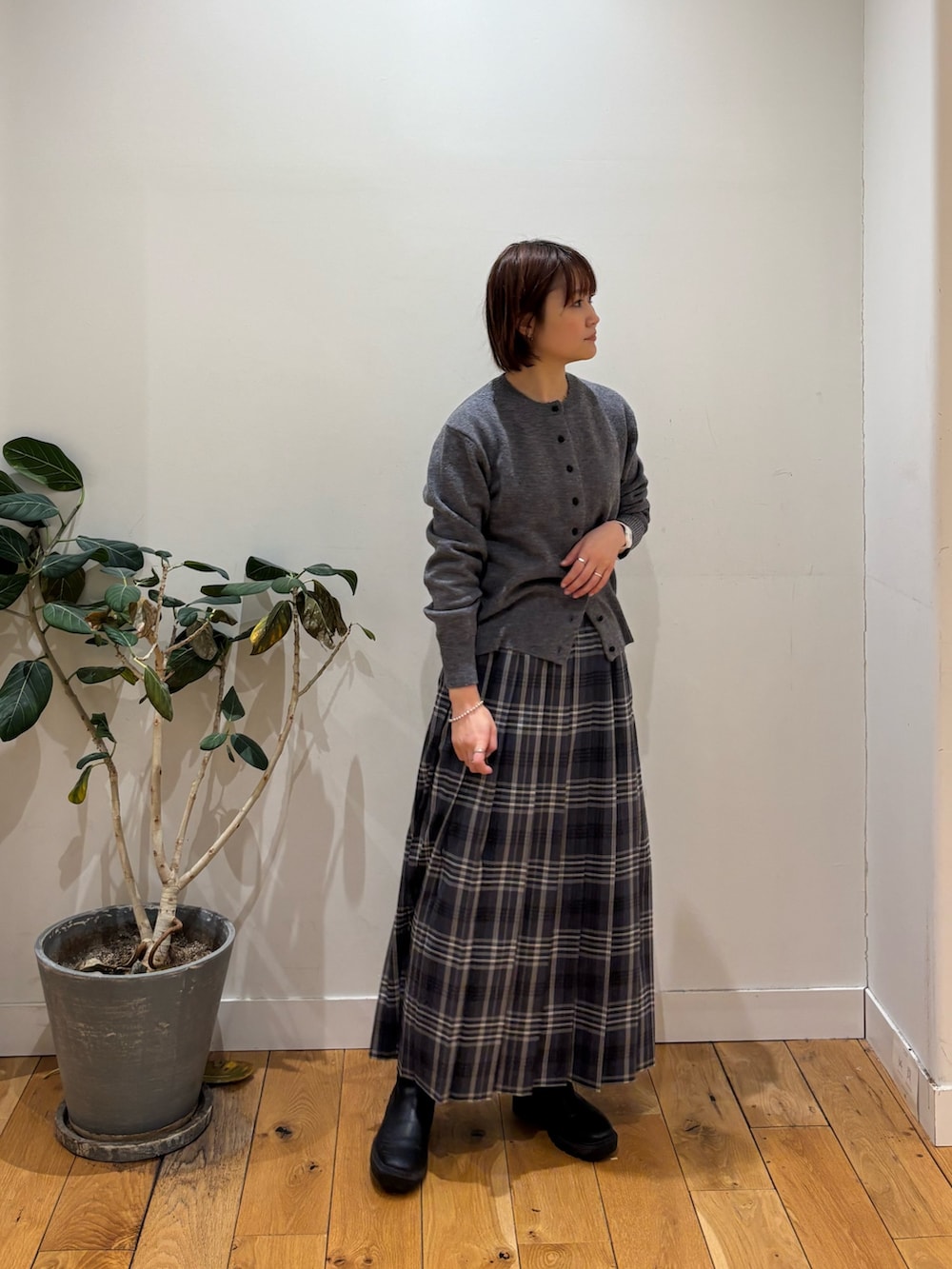 ワントーンで合わせてみました!チェックスカートを合わせるだけでいっきにおしゃれな感じになるのがいいですね🙆♀️