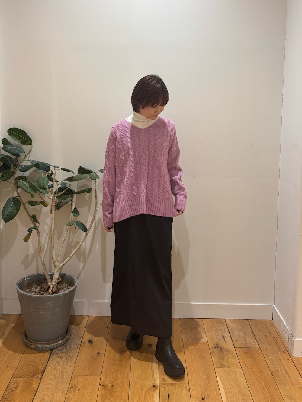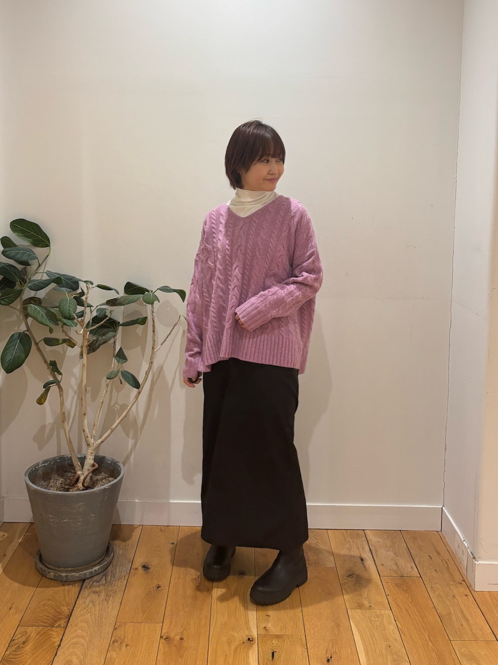 エカルのスカートは軽さがあり重い印象になりがちな冬のアイテムを和らげてくれますよ☻